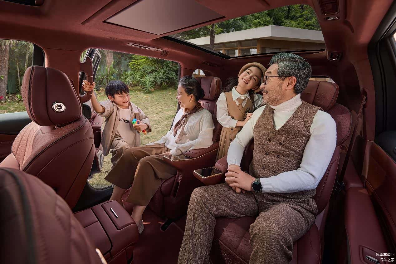 进入座舱,游艇环抱式布局带来全景化大视野,仿佛置身游艇驾驶舱。内饰大量采用软质材料包裹,四门饰板与副仪表台选用百年影木木皮装饰,搭配Alcantara全麂皮顶棚,彰显家庭生活质感品位。二排双零重力座椅堪称全家出行的“移动理疗室”,参照NASA标准127.5°黄金零压角,搭配12向电动调节、一键零重力及同级唯一18点热石按摩,轻松实现老人久坐不累、孩子不夹腿、妈妈不夹裙。