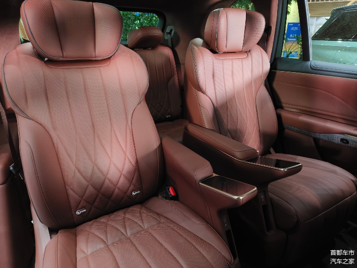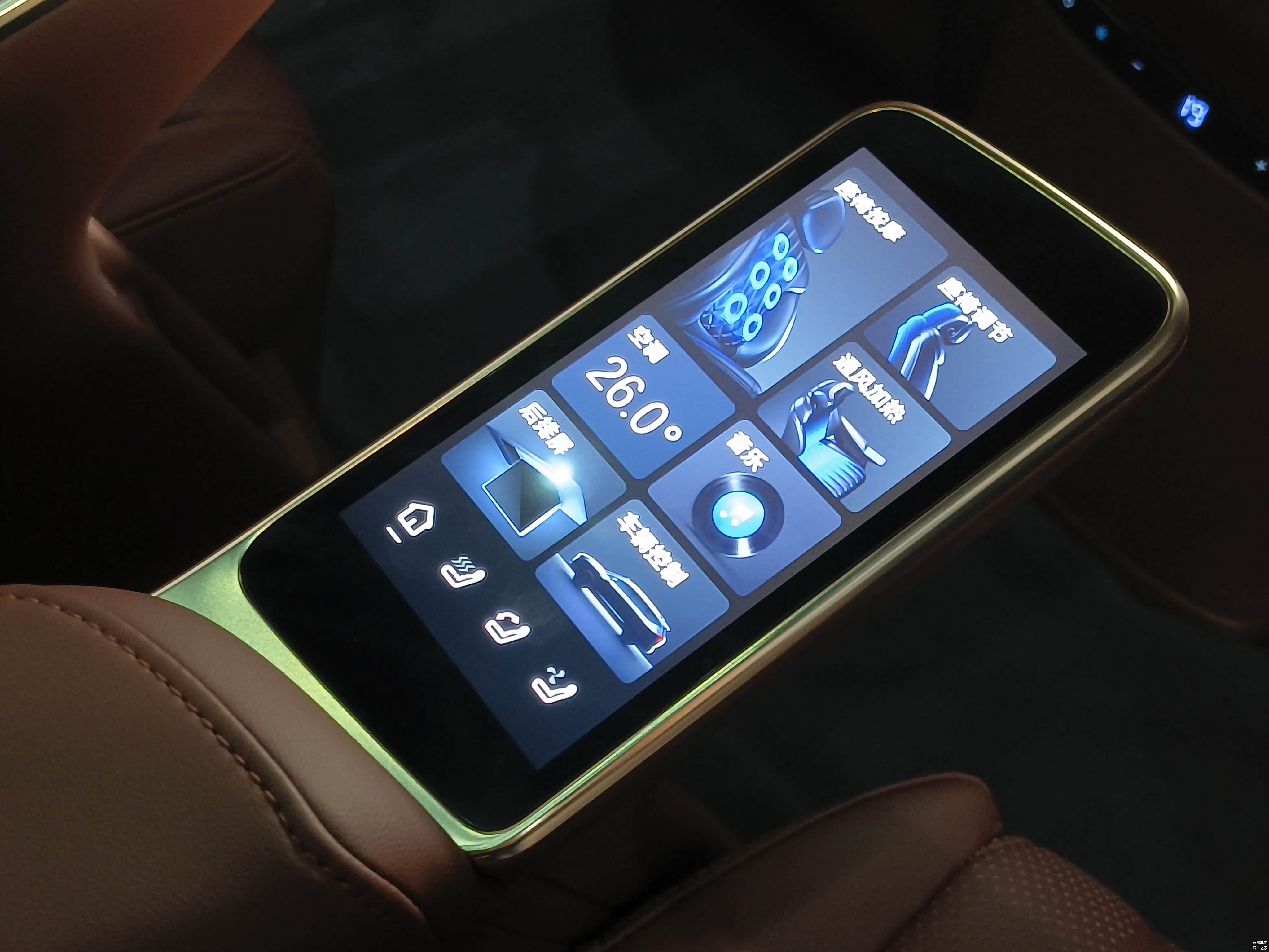 为了方便乘客操作,二排座椅内侧扶手集成了单独的触控屏,乘客可通过屏幕调节座椅位置、加热、通风、按摩等功能,还可控制后排吸顶屏幕和空调等,操作便捷直观。