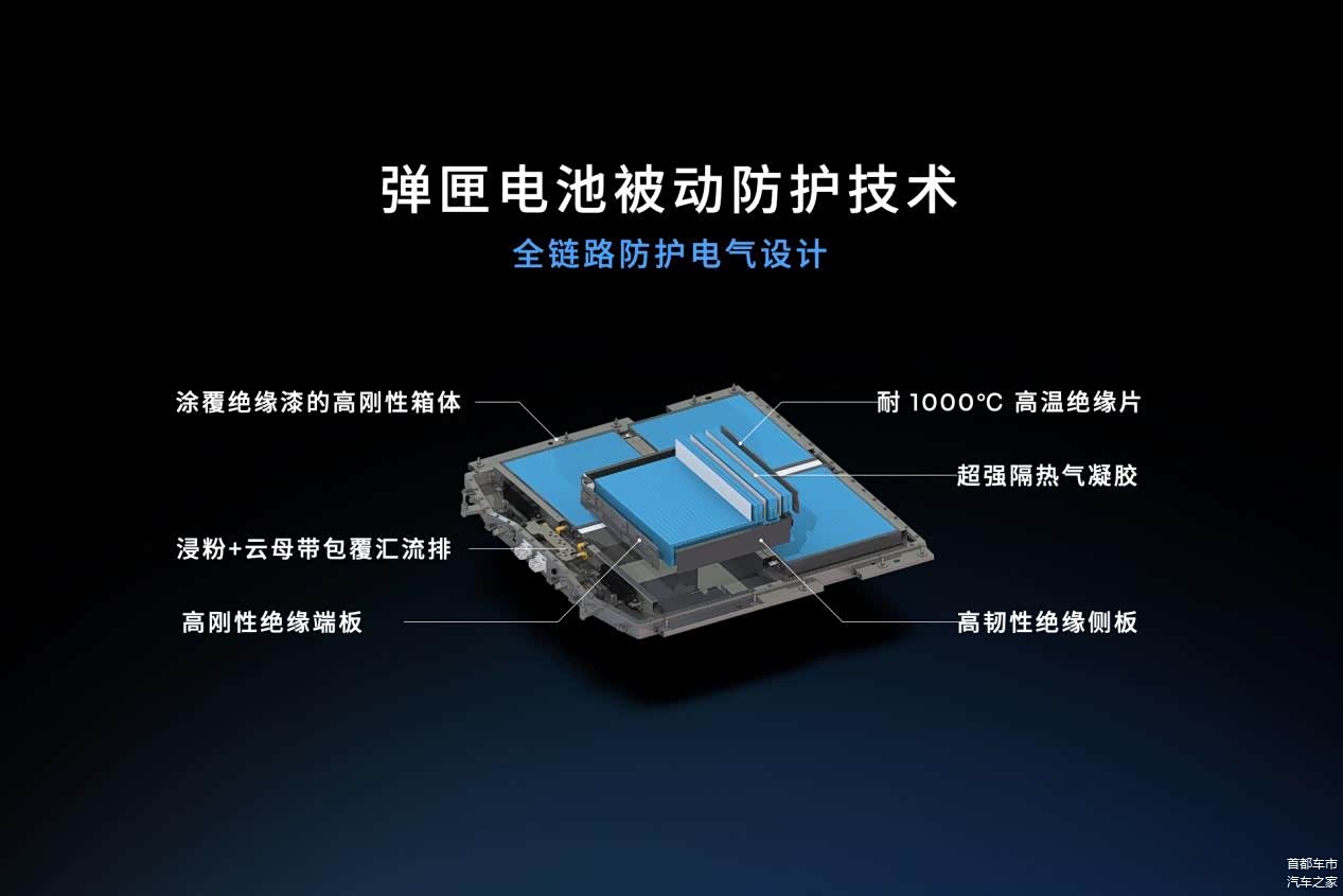 电池安全方面,采用“阻热-耐热-防火”三重防护体系,三元方壳电池搭载热蔓延抑制技术,配合超稳电极界面和云端电池管理系统,能够实现毫秒级风险预警,杜绝电池安全隐患。