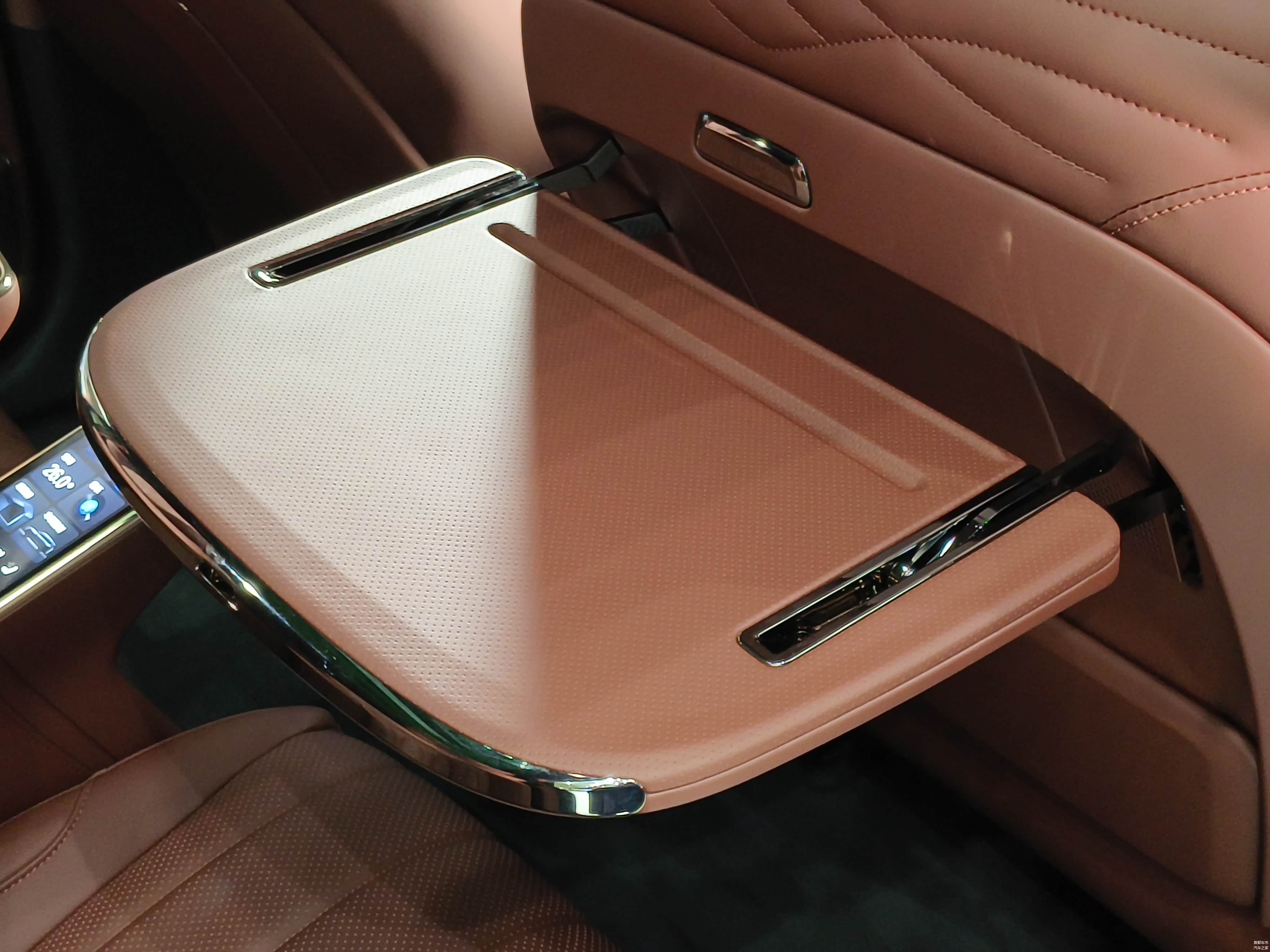 二排还配备了17.3英寸的吸顶屏幕,支持多媒体娱乐功能,配合全车24个扬声器的音响系统,营造出沉浸式的视听享受。冷暖冰箱、小桌板等实用配置,也为乘客提供了更多的便利。