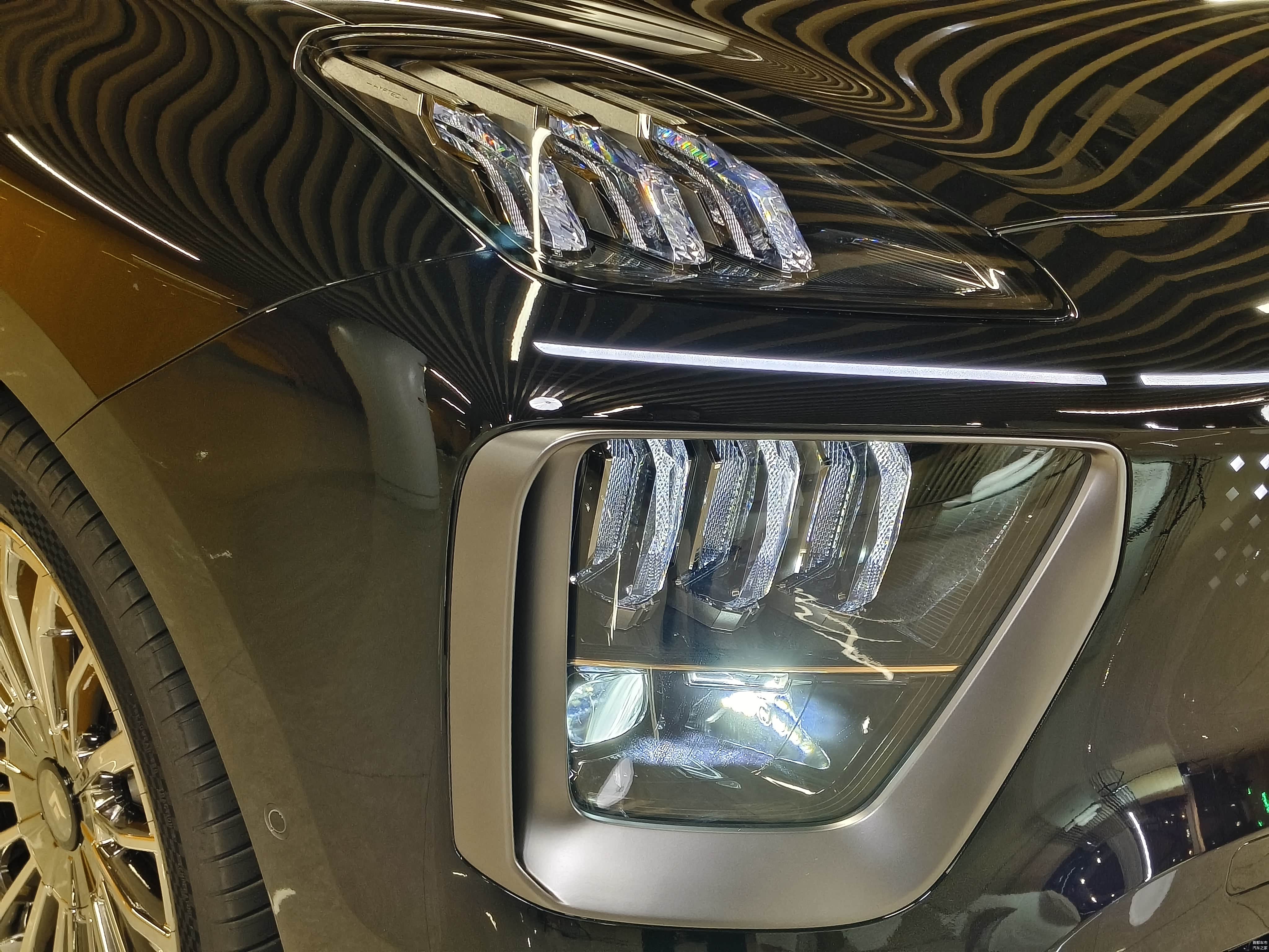 昊铂HL的前大灯组极具设计感,整体采用了竖状的排列,内部灯组则采用了钻石切割的造型,点亮之后非常具有艺术的美感和辨识度。这些车灯还能实现多场景下的不同灯效显示。无论是迎宾时的温馨灯光,还是灯光秀中的动态变幻,都能随心所欲地自定义定制。