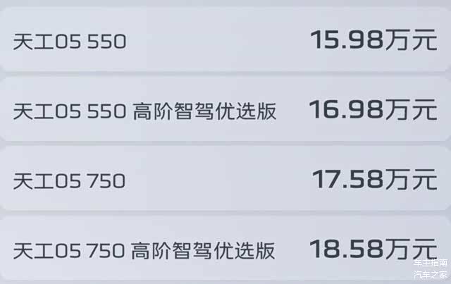 值得一提的是,天工05全系取消了仪表盘,但仅有高配车型才有HUD抬头显示系统,中低配版本想要HUD的话需要额外加价3999元进行选装,车子的落地总价已经超出很多人的心理预期。