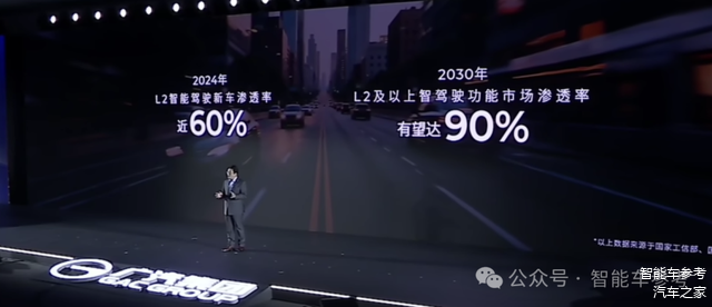 广汽科技日现场,在活动中一开场就援引相关数据,表示L2级及以上智能驾驶市场渗透率将在2030年达到90%,这里既包括了L3也包括L4。