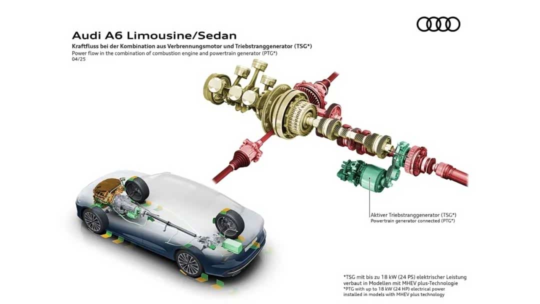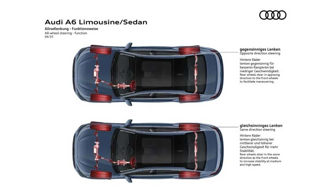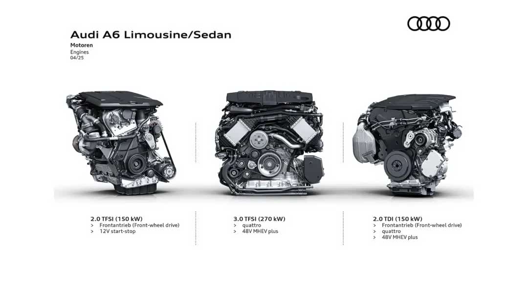 搭载内燃机的新款 A6 车身长度为 4.99 米,比上一代车型长 60 毫米。轴距几乎没有变化,为 2927 毫米。车轮尺寸范围从 21 寸到 23 寸,包括锻造三色选项。