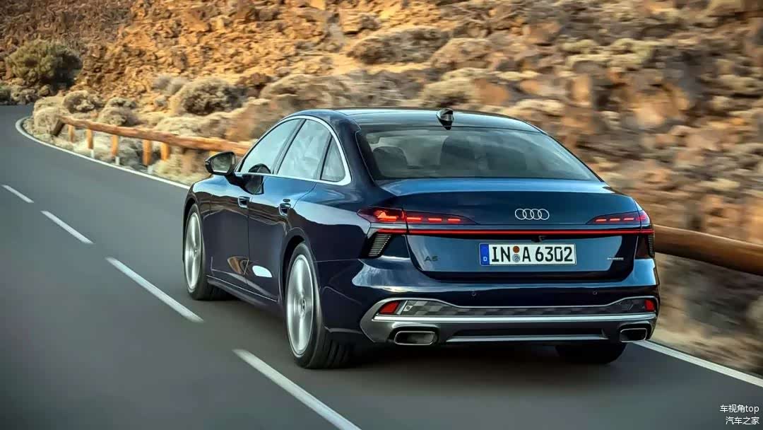 旅行车的宽尾灯条和黑色小翼也延续到了轿车版。这次的双排气管也是真的,体现了奥迪放弃招致诸多诟病的“假尖嘴”设计。A6 仍然是一款带后备箱的轿车,不像名字容易混淆的 A5 Sedan,后者严格来说是掀背车,但和已经停产的 A5 Sportback 一样是掀背车。