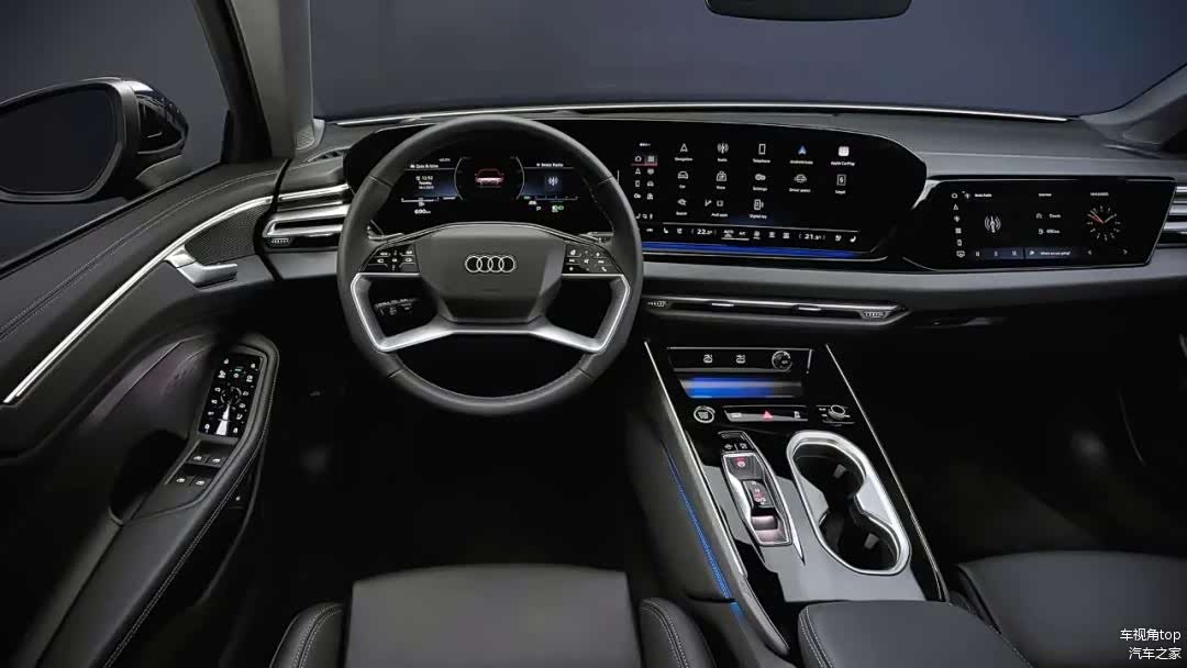 毫不意外,新款A6的内饰与Avant共享,包括三块屏幕。11.9寸的数字仪表盘和14.5寸的信息娱乐屏幕是标配,而10.9寸的副驾驶显示屏则是选配。没有了它,仪表盘会显得格外空旷,仿佛在设计时就考虑到了这块屏幕。