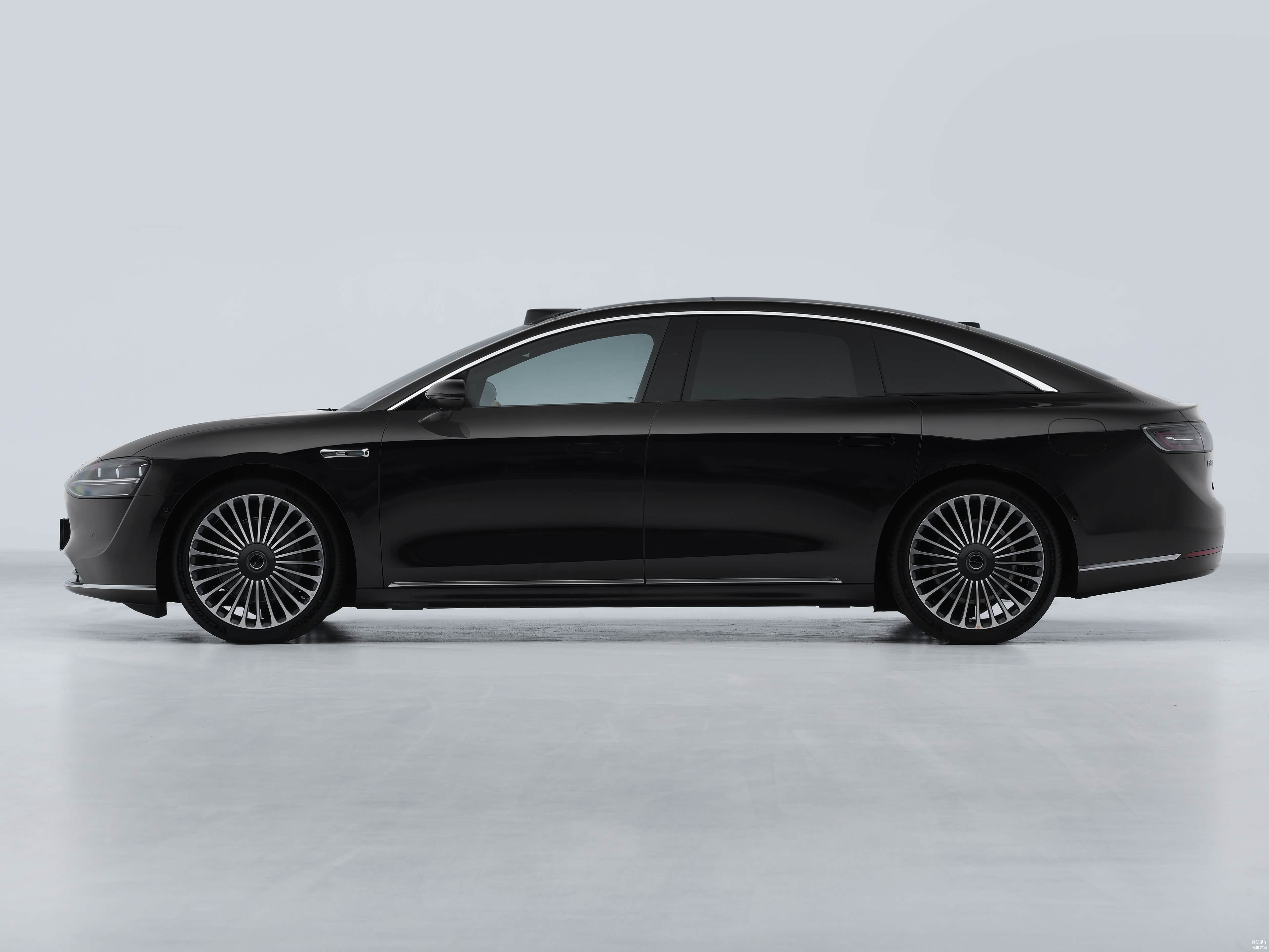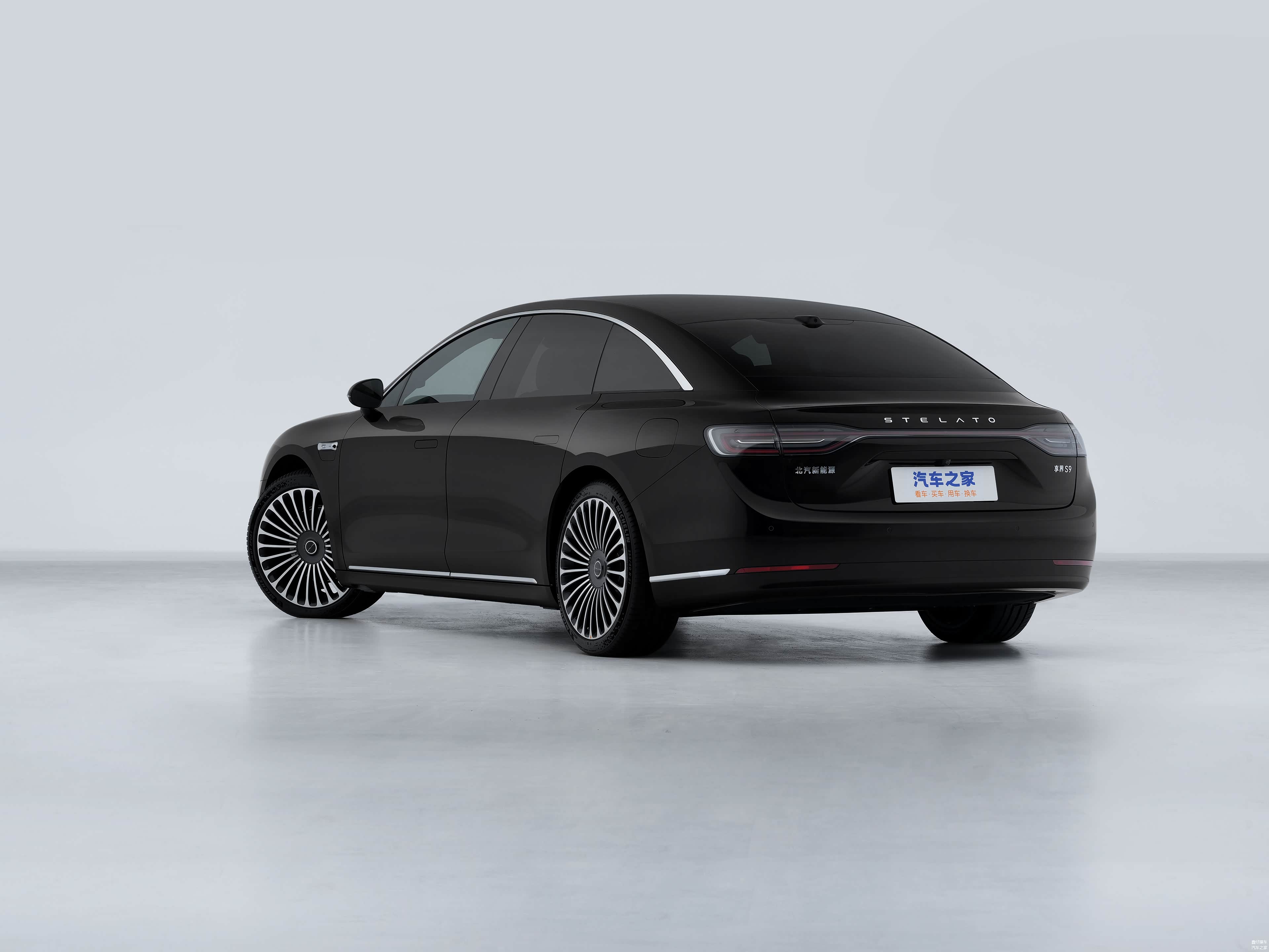 车身侧面,新车车顶线条采用了非常圆滑的弧形线条,车辆前后侧翼子板微宽出车身,腰线则平整的贯穿侧面,配合隐藏式门把手、密条辐轮圈等设计。车身尺寸方面,新车长宽高分别为5160*2005*1485mm,轴距为3050mm。来到车尾,新车采用贯穿式尾灯组设计,两侧光源呈现缓装设计,在点亮后具有不错的辨识度。