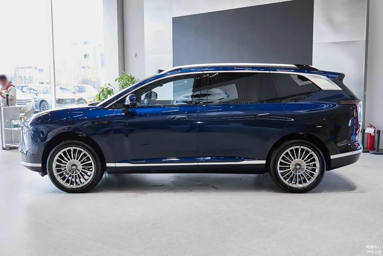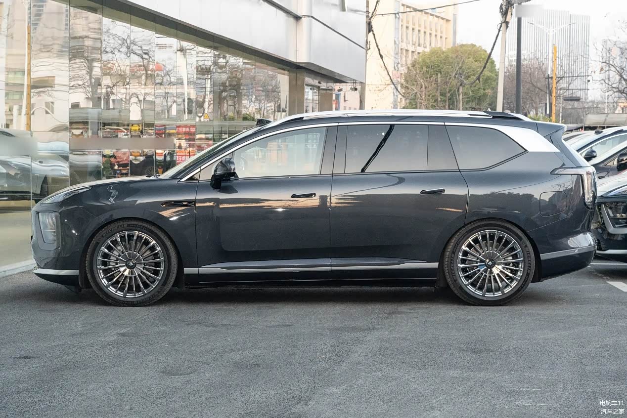 先来看它的外观设计,昊铂HL的外观设计和之前的昊铂HT和昊铂GT是不太相同的,厂家也默认它的设计是介于SUV和MPV之间的车型,其实从它的侧面就能够看出来车头位置很短,整个后车身部分基本上和很多MPV很接近,如果要找一款类似的车型,那么可以算上大众的揽境或者是威然。这样的好处就是把空间尽可能的留给乘坐和后备箱,而且新能源车特有的设计使得它的机械结构部分占空间相对较少,因此,空间绝对是昊铂HL的最大优点。