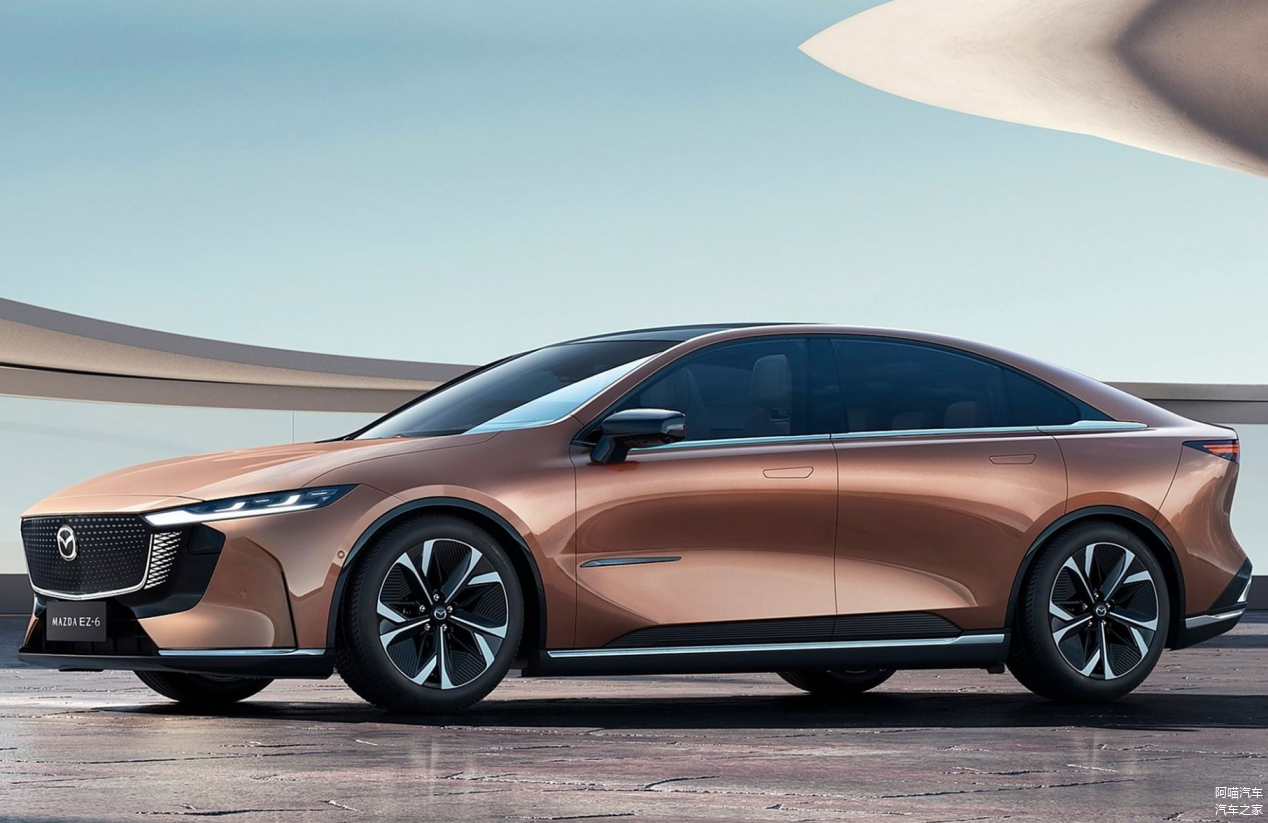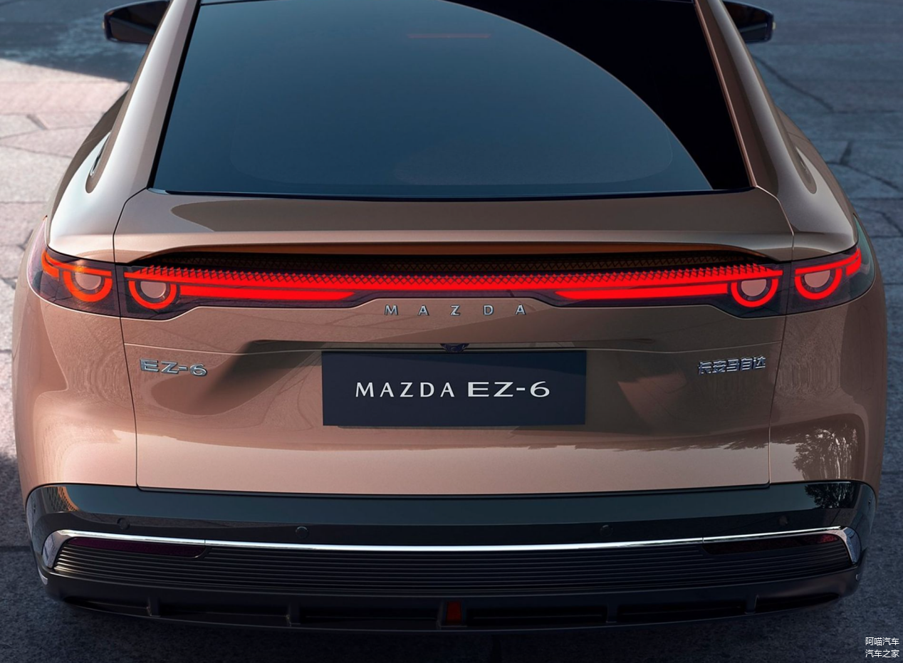 我们再来看车辆的具体设计,先看外观,长安马自达 EZ-6传承了“魂动”美学,拥有流畅的车身线条,还有电动尾翼和无框车门设计,增加了车辆的运动感,又提升了时尚度,开着它上路,喵哥觉得这款车的回头率不低。