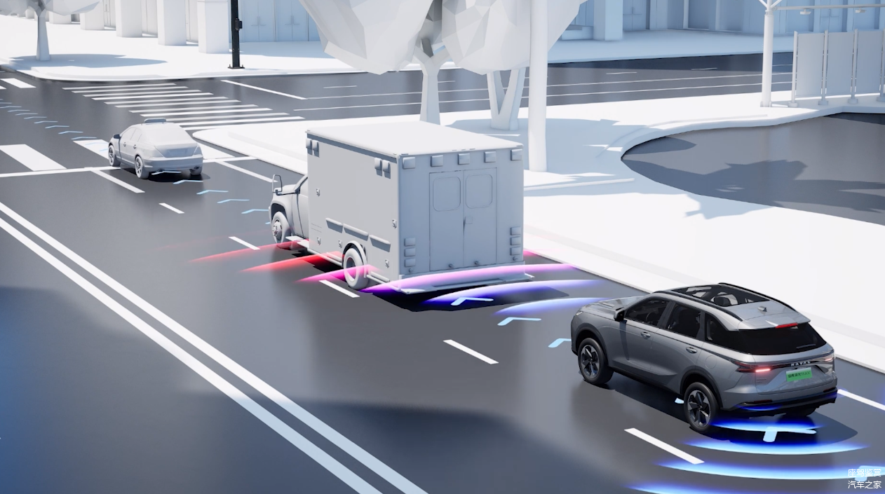对于每天通勤1小时以上的用户,城市NOA(记忆领航)功能很是实用。2个800万像素双目高清摄像头(探测距离330m)与1个300万像素后视摄像头、4个环视摄像头组成的视觉阵列,配合BEV感知技术,能将车周场景转化为实时俯视图,精准识别雪糕筒、施工围挡、加塞车辆等非标准障碍物。实测中,面对路口少变多车道、临时借道等复杂情况,系统的决策逻辑比人类驾驶员更理性:提前100米预判变道,遇加塞车辆时主动减速保持安全距离,过红绿灯时精准控制车速跟住绿灯尾,避免急刹带来的不适。