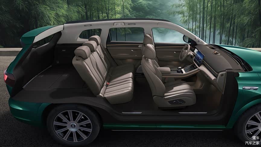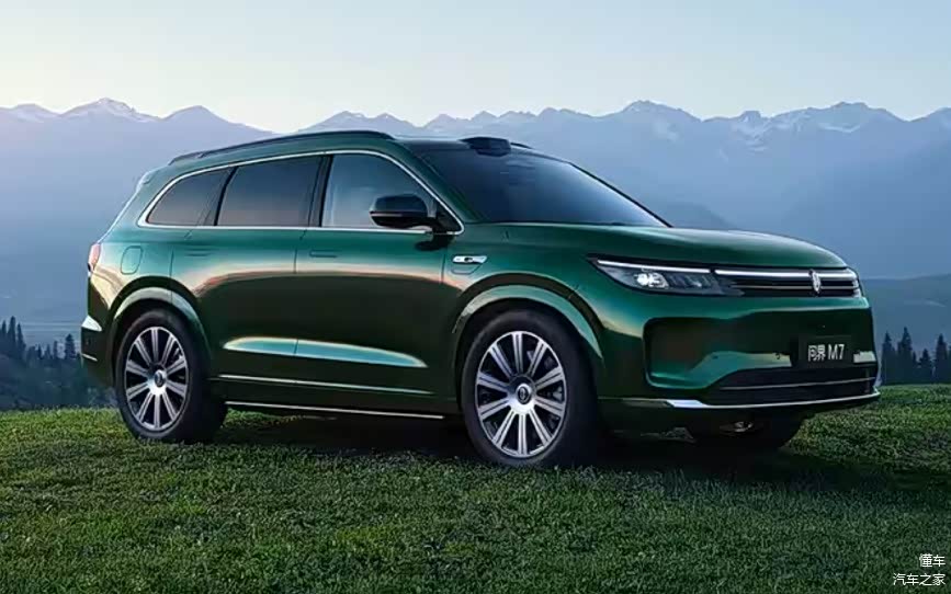 牧野青配色的问界 新M7整体呈现深邃的绿色,其灵感来源于广袤原野的苍翠与深邃,在光影流传间呈现出典雅大气;全新升级的20英寸十幅运动轮毂和车身相得益彰,不仅以立体切割造型强化了整车的大气感,精准拿捏了运动感和科技感的平衡,而且充分考虑了空气动力学,进一步优化了风阻系数。