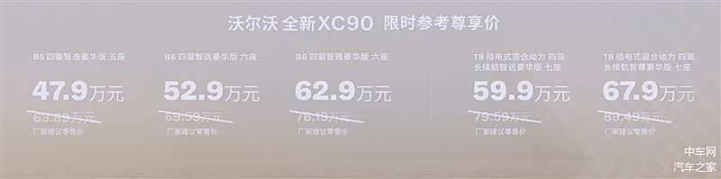 当国产车型一年磨三剑时,沃尔沃则用责任和实力表明,10年磨一剑同样能跟上主流需求。这一代 沃尔沃XC90(图片 | 参数 | 询价)自2015年上市,此次则是第二次中期改款,在很多细节上进行升级。并且相较于此前仅提供5座和7座版本,这次则提供6座版本可选,且是官方主推版本。而在最关键的价格部分,相较于老款车型,新车官方指导价格有所下降,为47.9万-67.9万。