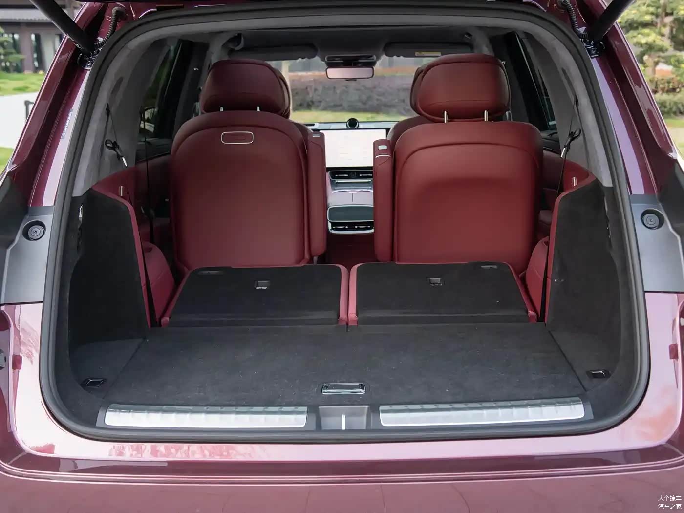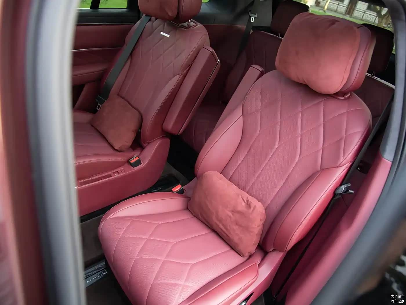 车尾的贯穿式尾灯设计类似于M9的简化版,仍然能够展示复杂的灯语,但尺寸稍微小一些。上方的装饰条与之相连,尾箱的中间部分镶嵌有问界字母车标,车顶的扰流板也不会缺席。后保险杠部分还装饰有镀铬装饰,使整车的风格更加统一。在车辆的内部装饰上,前排的设计大致遵循了问界M9的设计理念。它采用了三大屏配Hud抬头显示来构建联动系统,星环散射体也不会缺席。此外,杯架手机的充电面板、盖板的储物格和怀挡机构都是标准配置,方向盘的设计也是众所周知的。这款车的纵向空调出风口增添了不少时尚元素,内饰的多种撞色配色也为驾驶者提供了丰富的选择空间。前排座椅配备了通风加热按摩功能,而第2排的6座版本则配备了双独立座椅和右侧的重力座椅,这些座椅都具备通风加热按摩功能,并配备了水平自适应的双扶手,非常周到。5座版本还提供了9升的后排抽屉式储物箱,以增强其实用性。零重力座椅也没有缺席,这得益于其宽敞的空间。第3排座椅也提供了相当不错的用户体验。例如,鸿蒙OS4.0智能座舱整合了DeepSeek AI大模型,电冰箱和激光投影屏幕等配置也是标配,完全符合三四十万元的价格标准。值得一提的是,这款车的电冰箱具有零度的最低温度和7.3升的容积,这与其他友商的设计路线存在一定的差异。
