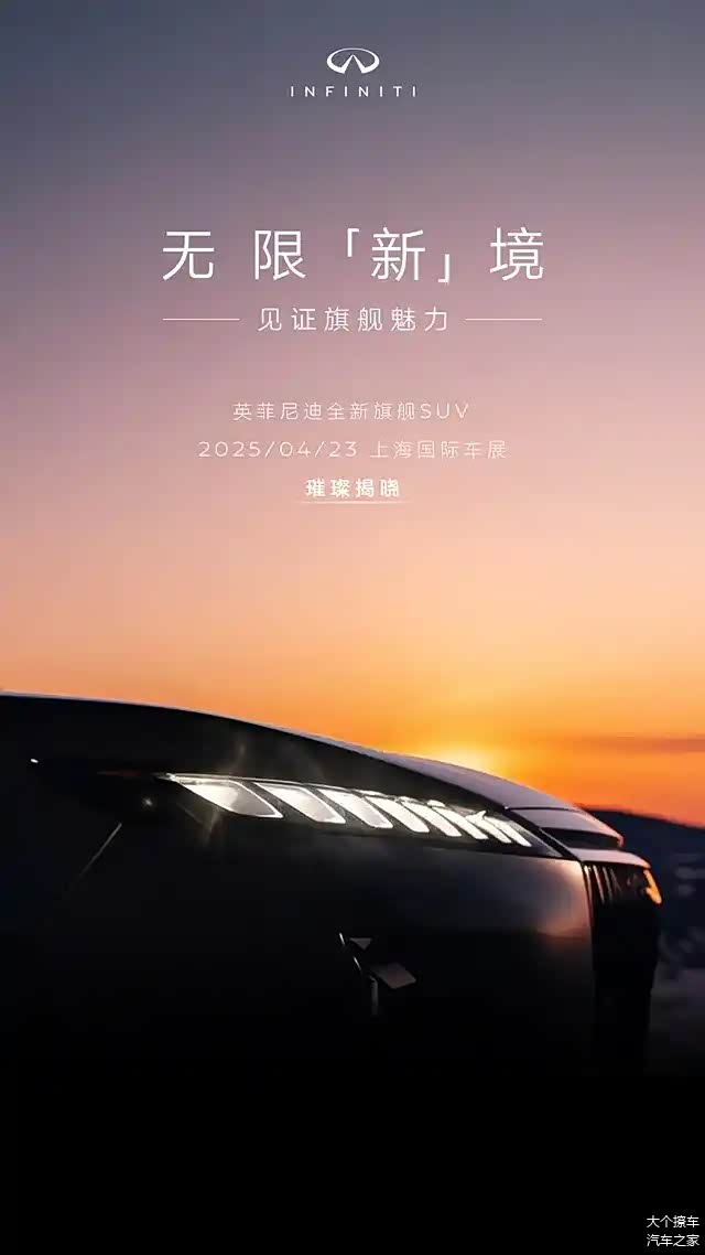 4月16日,英菲尼迪公司在社交媒体上发布了上海车展的宣传海报。从海报的详细内容中,我们可以清晰地看到,海报上展示的正是全新的QX80车型,这款车被定位为全尺寸SUV,并且其动力系统采用了全新的3.5T V6双涡轮增压发动机,这取代了之前的5.6L V8发动机。
