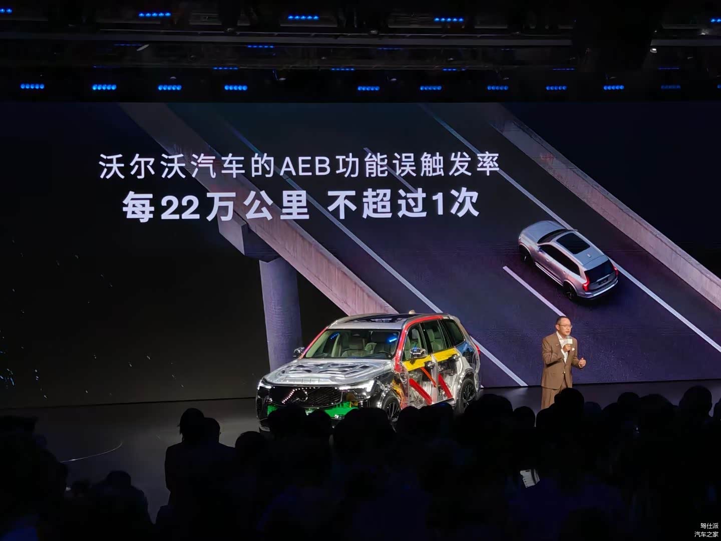 只有一句“沃尔沃汽车的AEB功能误触发率,每22万公里不超过1次”。