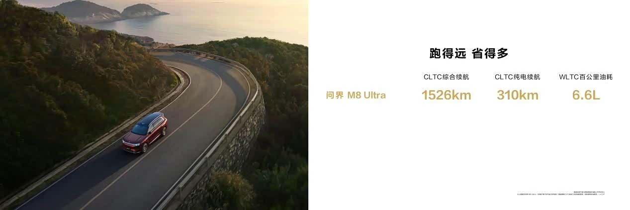 问界M8纯电续航至高可达310km[10],满油满电状态下续航可达1526km[11],可实现超长跨省出行。电机采用智能油冷2.0技术,从根本上提升动力性与静谧性。在极速行驶和多次全力加速等极限工况下也能保持超高的稳定性,在持续高转速的区域内能够保持极速性能不衰减。
