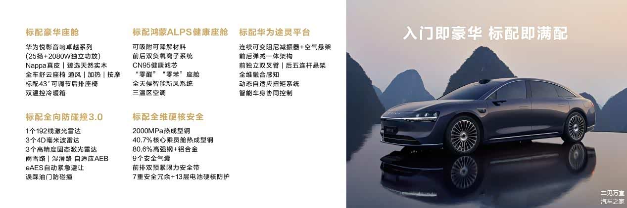 当然,享界S9增程版可不是价格有优势这么简单,新车不仅全系标配前后排座椅通风/加热/按摩,还提供了豪华座舱、鸿蒙ALPS健康座舱、后排零重力座椅等配置,主打一个“入门即豪华,标配即满配”,给出了十足的诚意,只想将最好的配置都给信任自己的用户。