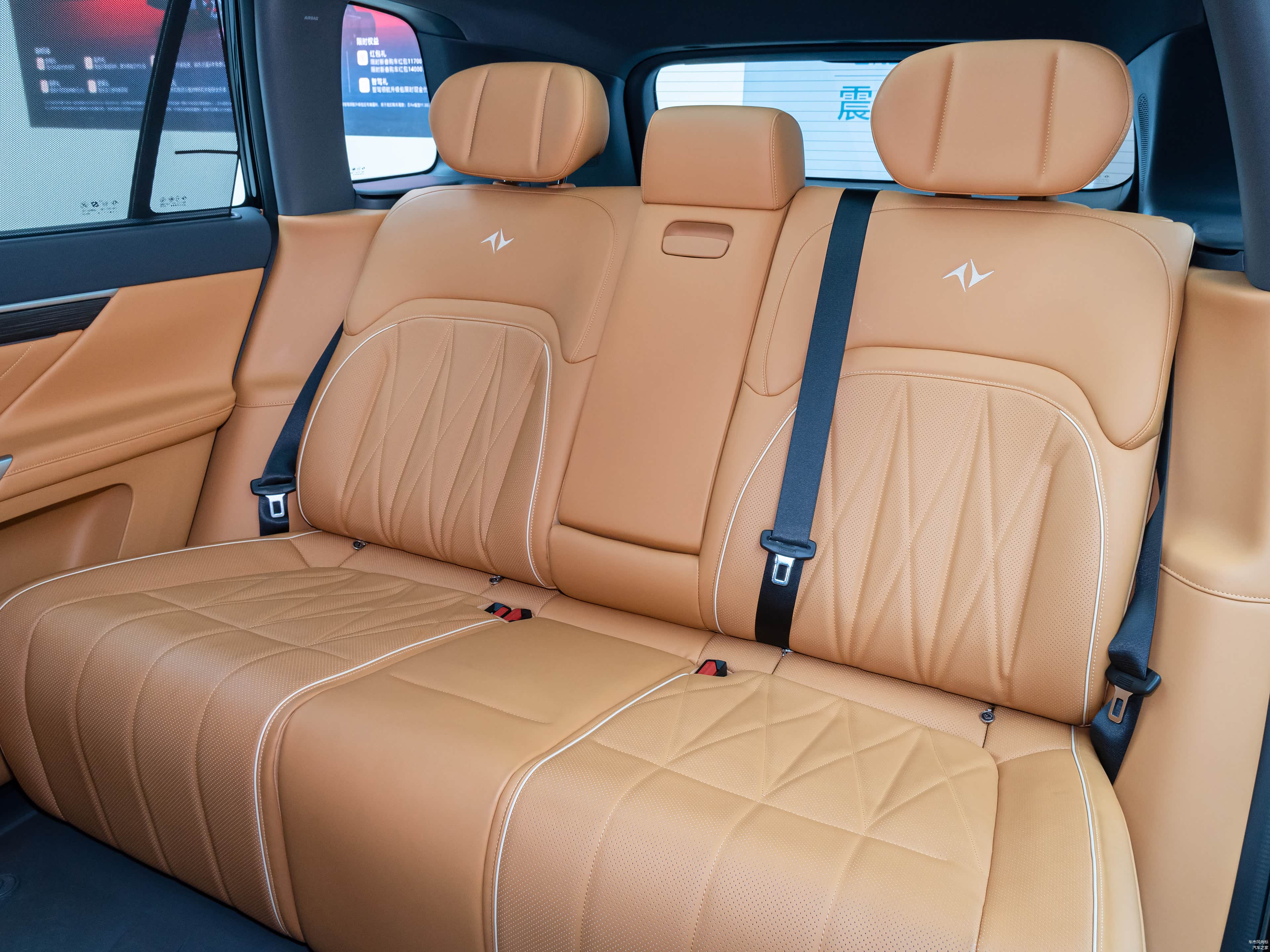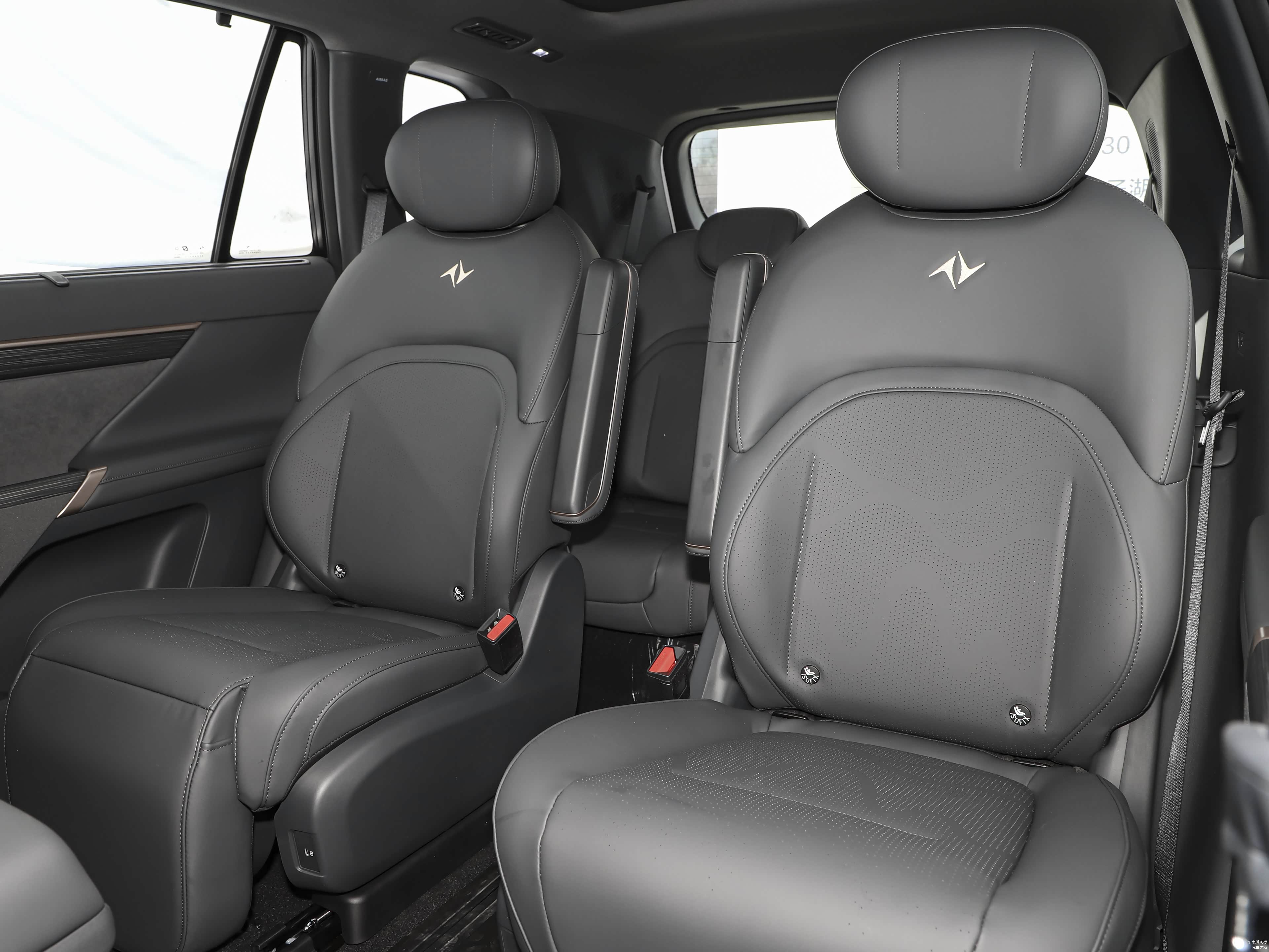 六座版则采用2+2+2布局,前排座椅支持加热、通风和按摩功能(主驾),第二排右侧独立座椅可升级为零重力座椅,支持8点按摩、通风加热,提供一键零重力模式,乘坐体验堪比豪华MPV。六座版的第三排座椅并非“应急设计”,可以乘坐成年人,腿部和头部都还有空间余量,180毫米的过道宽度让进出更加便捷,且座垫高度与靠背角度均经过优化,即使是长途乘坐也不会感到疲惫。此外,全系标配的双层夹胶隔音玻璃与静音轮胎,配合50万级豪车水准的NVH调校,进一步提升了舱内静谧性,后备厢。6座版本满载状态下,后备厢常规容积不到300升,能放下2个行李箱和一些背包等物品,非满载状态下,可以放倒第三排座椅来拓展空间。