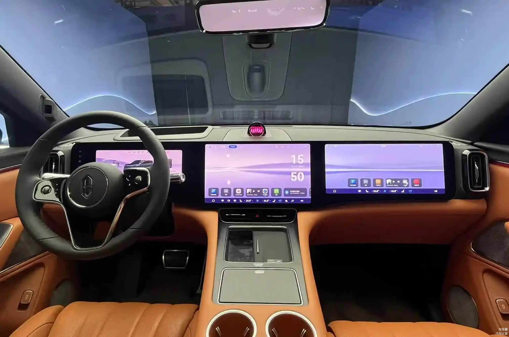 当国产豪华车型达到这个价格区间时,一旦车门被打开,豪华的感觉立即扑面而来。在选材方面,大量使用了皮革软包作为覆盖材料,而在工艺方面也投入了更多的精力,通过复杂的打孔工艺和菱形图案的设计,展示了极高的精致度。中控台的各个部分都配备了显示屏,甚至在副驾驶侧也规划了宽敞的娱乐区域,使得出行变得更加轻松有趣。令人更加惊喜的是,高级版本还特别为后排座位装配了一块32英寸的大屏幕,使得整个空间充满了科技氛围。在相同级别的社交环境中,这种高科技的氛围表现得相当出色,无论是用于商务招待还是家庭出行,都能让旅客体验到极度的豪华和科技吸引力。