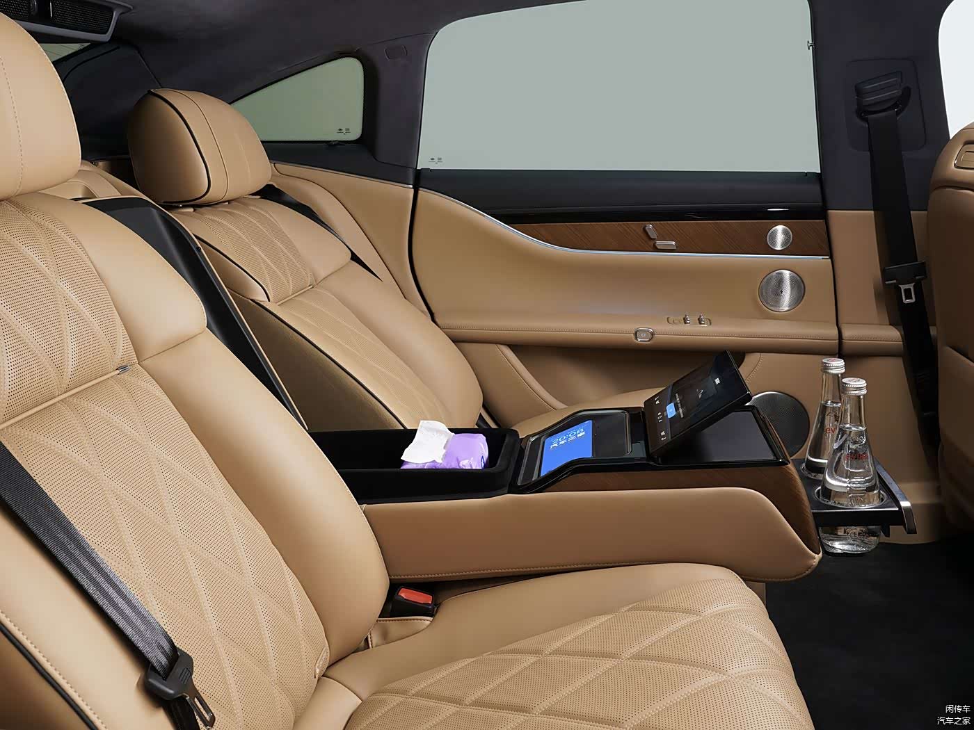 4种撞色内饰配色提供了相当丰富的选择,华为鸿蒙智能座舱4.0提供了出色的交互体验,作为一款偏向行政级别的中大型轿车,第2排座椅,双衍缝工艺独立造型,Nappa真皮,天然实木,舒适云感,通风加热按摩,当然都不会缺席,还有翘起的娱乐屏及招牌的投影屏,提供了综合完备的体验。在动力方面当然是该车的一大重点,增程式版本对于北汽来讲也是首次尝试,1.5T发动机最大功率160马力,参数上与问界M8上的相当,或将采用相似的技术,与之匹配的是,后置单电机,最大功率309马力显得相对克制,没有四驱版本,这也是价格能够明显下探的原因之一。
