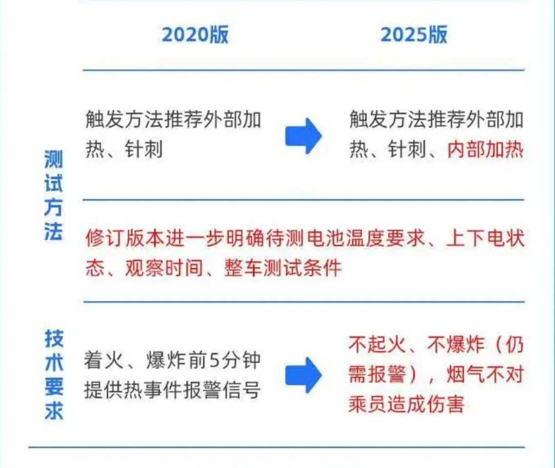 看似这种没有对错的事件,也让公众再次对电动汽车的安全产生顾虑。不过还是有好消息,近期工信部发布《电动汽车用动力蓄电池安全要求》新规,将于明年7月正式实施。工业和信息化部表示,这次修订主要新增电池底部撞击测试、快充循环后安全测试等试验项目,加强热扩散等安全要求,将动力电池起火、爆炸前5分钟报警提升至不起火、不爆炸,从产品设计端降低动力电池自燃事故发生率,进一步保障消费者生命财产安全。