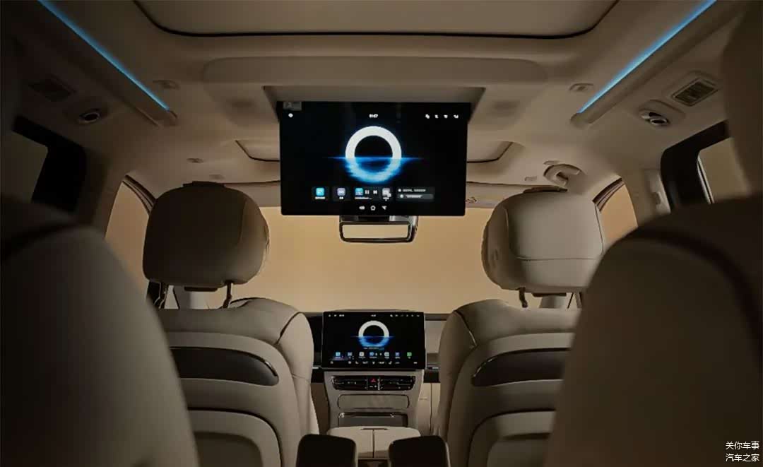 重点是,M8乾崑支持7屏互联,包括15.6 英寸中控屏、12.3英寸仪表盘、17.3英寸3K分辨率高清吸顶屏、双侧5英寸扶手屏、流媒体后视镜,以及G-link 副驾屏平板。同时,它也有9.0L大容量的冷暖冰箱以及小桌板、无线充电、电源插座等等,功能十分丰富。