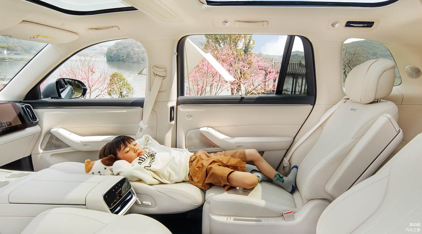 因为,6座版的第二排位置可提供鸿蒙智行看家的“零重力座椅”,右侧乘客还可放倒副驾座椅的靠背与腿托相连,让身体获得更好的放松。