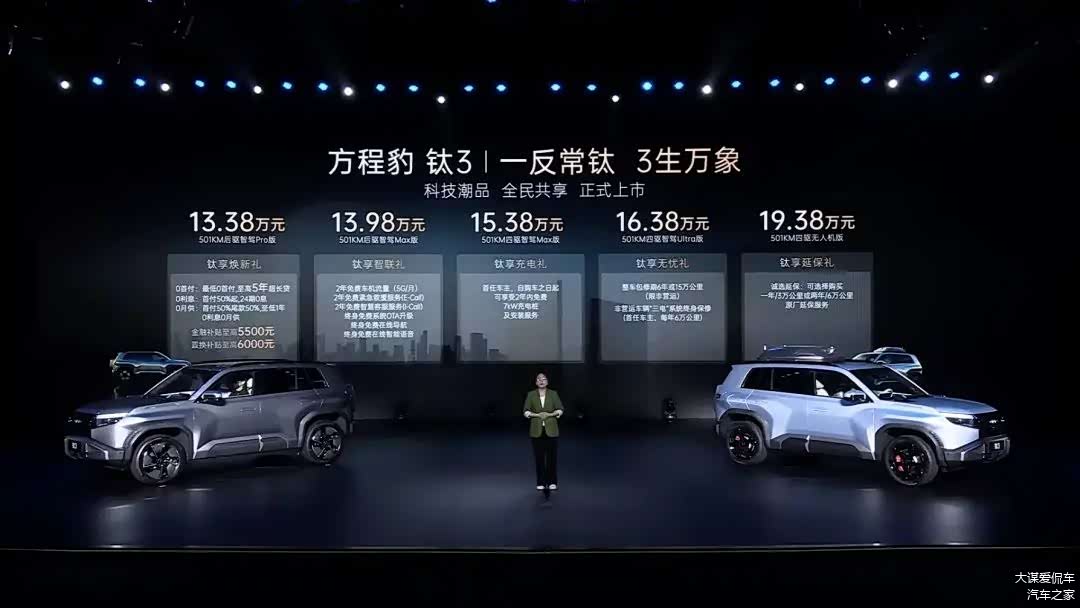 方程豹此前靠豹5、豹8主攻越野市场,但过于垂直的定位限制了增长。钛3的推出,标志着品牌向城市化、年轻化转型。