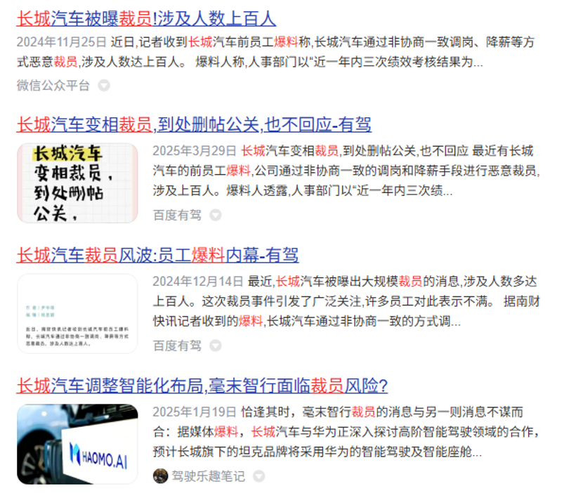 举报比亚迪无果被反噬碰瓷这事到现在也没有定论;内部人员关于长城结构、薪资、黑料的曝光层出不穷;欧拉芯片门、大狗命名门、H6碰撞测试门这些惊为天人的操作更是把长城的品牌价值稀释到像自助餐厅里的紫菜蛋花汤。