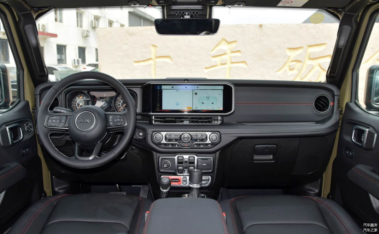 开门上车,你会发现它的内饰设计低调,但极具品质感。虽然为了保证在越野颠簸路况下依然能够使用车内功能而大量采用实体按键,但从液晶仪表到12.3英寸中控大屏,从Uconnect 5信息娱乐系统到CarPlay,从电动调节到前排座椅,到阿尔派扬声器在内的现代化装备,都在让牧马人在表达着经典传承的同时,也不会失去年轻一族。