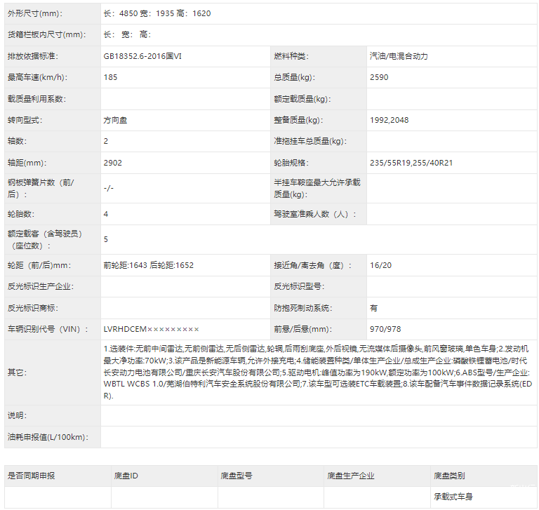 动力方面,这次新车申报的是增程的版本,预计还会有纯电版本的车型, 增程版电机峰值功率为190kW,发动机功率72kW。