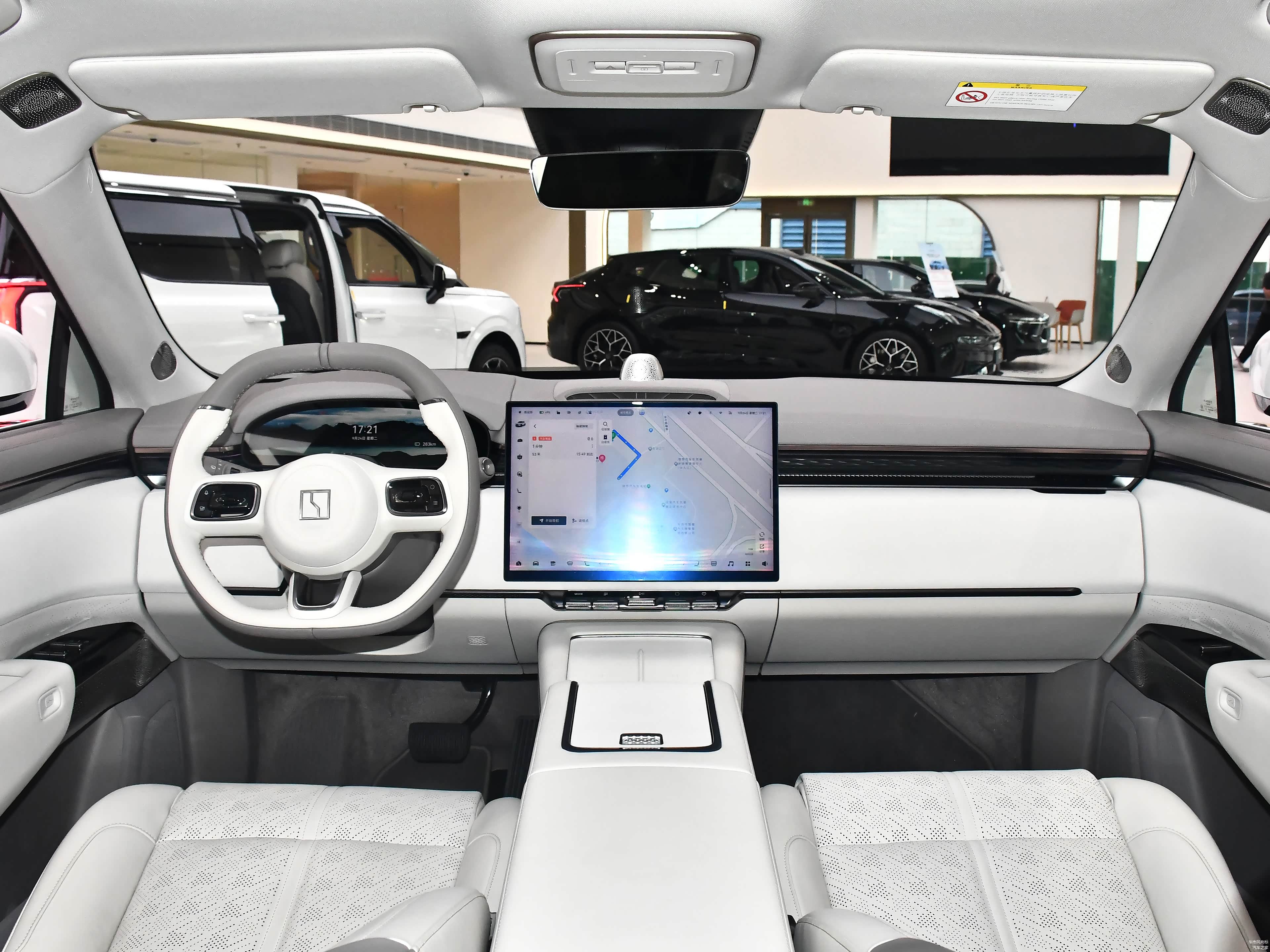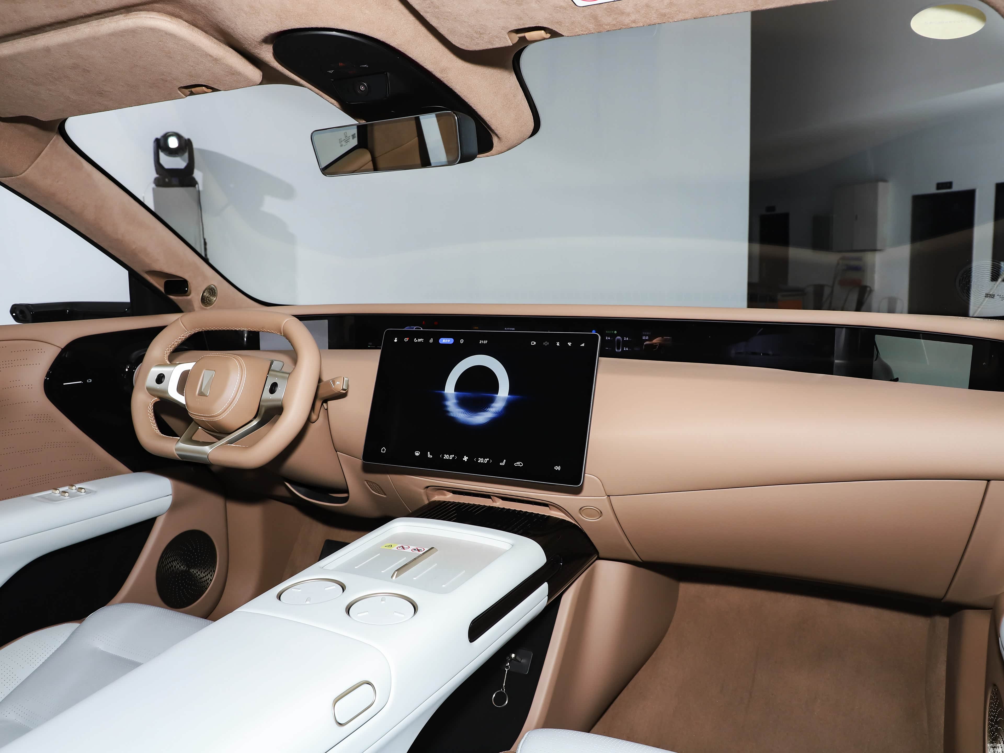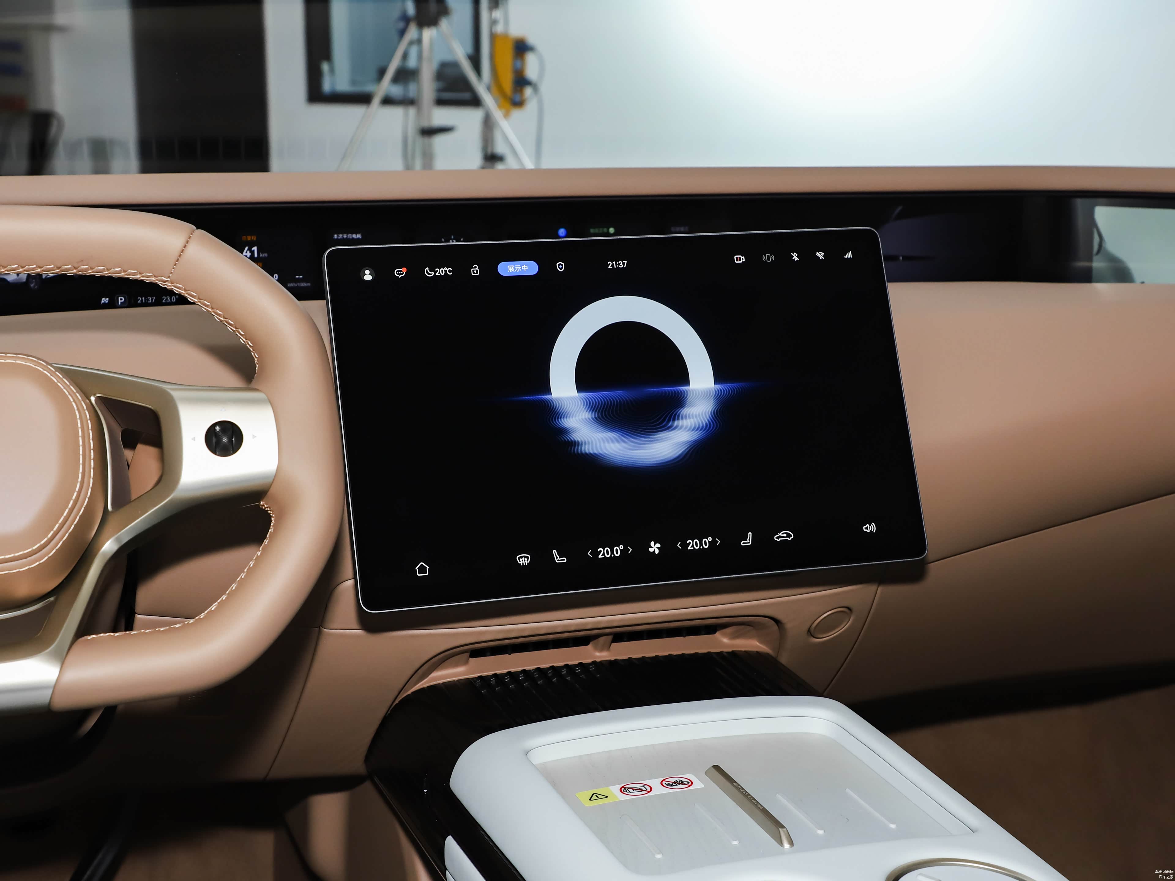 内饰风格也是截然不同,阿维塔07 的座舱以“都市豪华头等舱”为核心理念,中控台造型层次分明,整体呈现环抱式设计,配类似圆角矩形方向盘,提供黑色/深紫与白/棕两种主题,材质上采用全粒面NAPPA植鞣真皮,通过生物基鞣剂工艺减少有害物质,表面珠光涂层在光线折射下呈现细腻光泽。顶棚选用Dinamica超纤仿麂皮材质,通过OEKO-TEX Standard 100婴幼儿级认证,触感柔软且环保。车内软质包覆面积超过10平方米,门板储物槽、手套箱等细节处均采用植绒处理,NVH静音性能进一步提升。