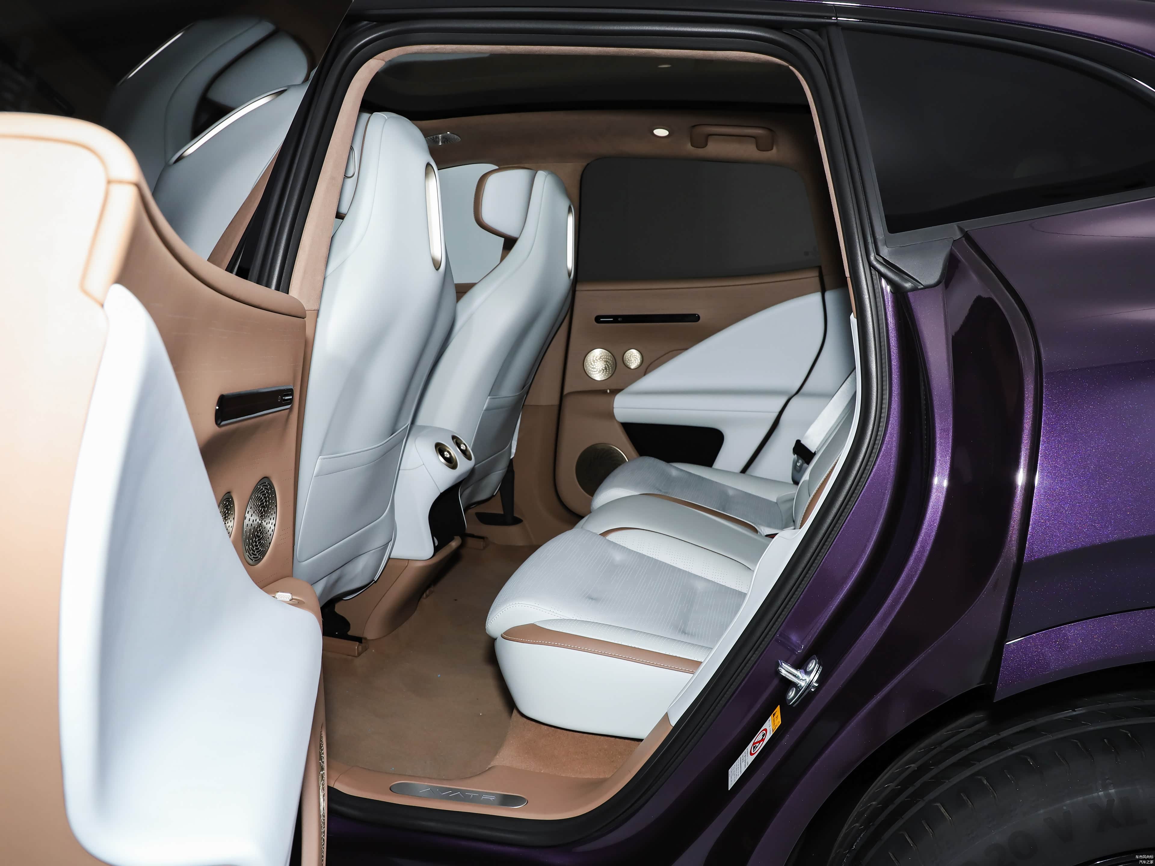 车侧隐藏式水切工艺与上扬的车身线条,进一步强化了车身的一体感,带来悬浮轻盈的身段,配备隐藏式门把手和双色低风阻轮毂,尺寸达到了20英寸,比例合适,看着大气又时尚,尾部造型饱满圆润,星轨式流光尾灯通过全LED光源与动态灯语,夜间辨识度显著提升。