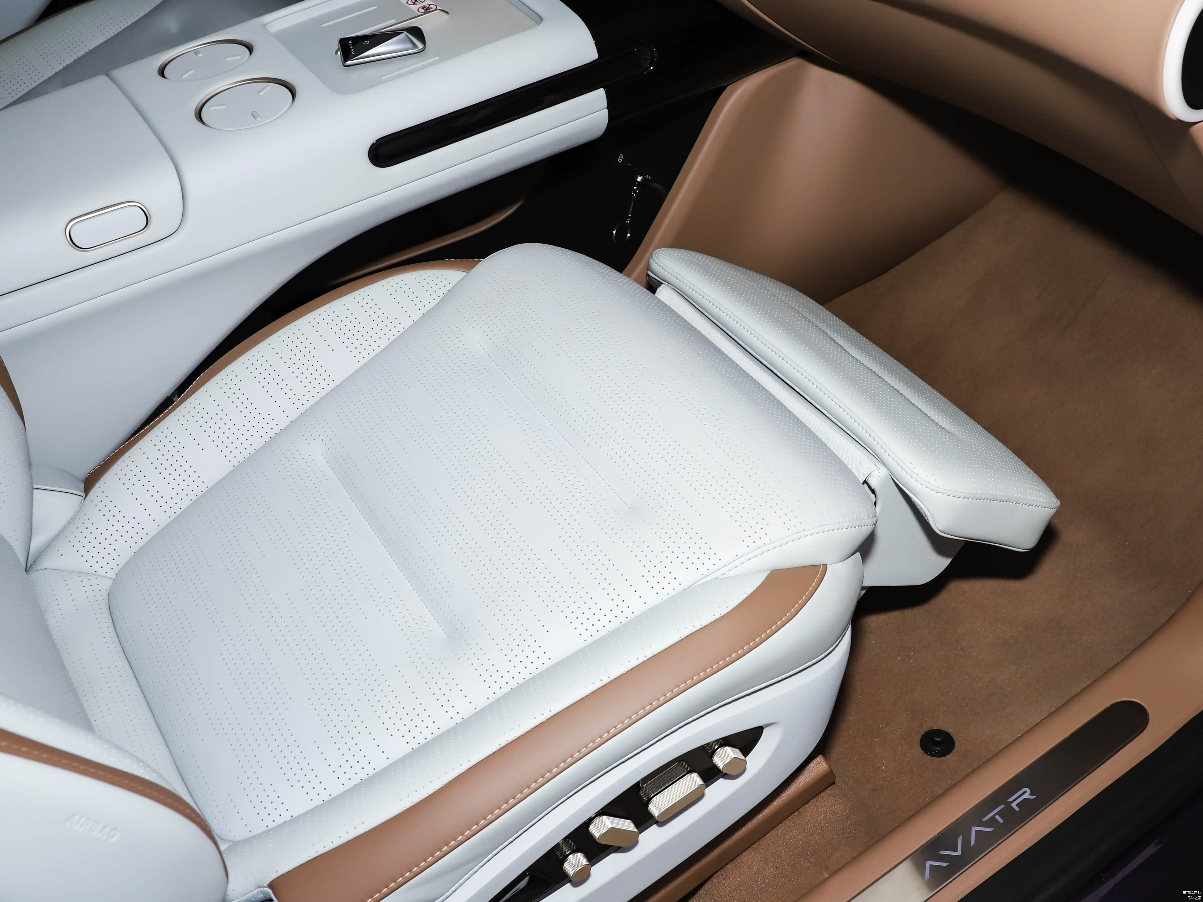 空间感受上,阿维塔07 二排腿部空间965毫米,实测身高176厘米乘员膝盖距离前排座椅靠背超过2拳,座椅宽度1317毫米,三人乘坐时横向空间更为宽裕,配合28°-34°靠背角度电动调节,可以获得较为舒适的坐姿。前排配备的双零重力座椅支持16向电动调节、3档通风与5种按摩模式,二排座椅标配加热与功能,配合全景天幕与电动遮阳帘(标配),舒适性达到行政级车型的水准。储物空间上,其前备箱容积有90升,后备箱常规状态500升(最大能扩展到1325升),地板下方隐藏60升储物格,适合分类收纳随车物品。