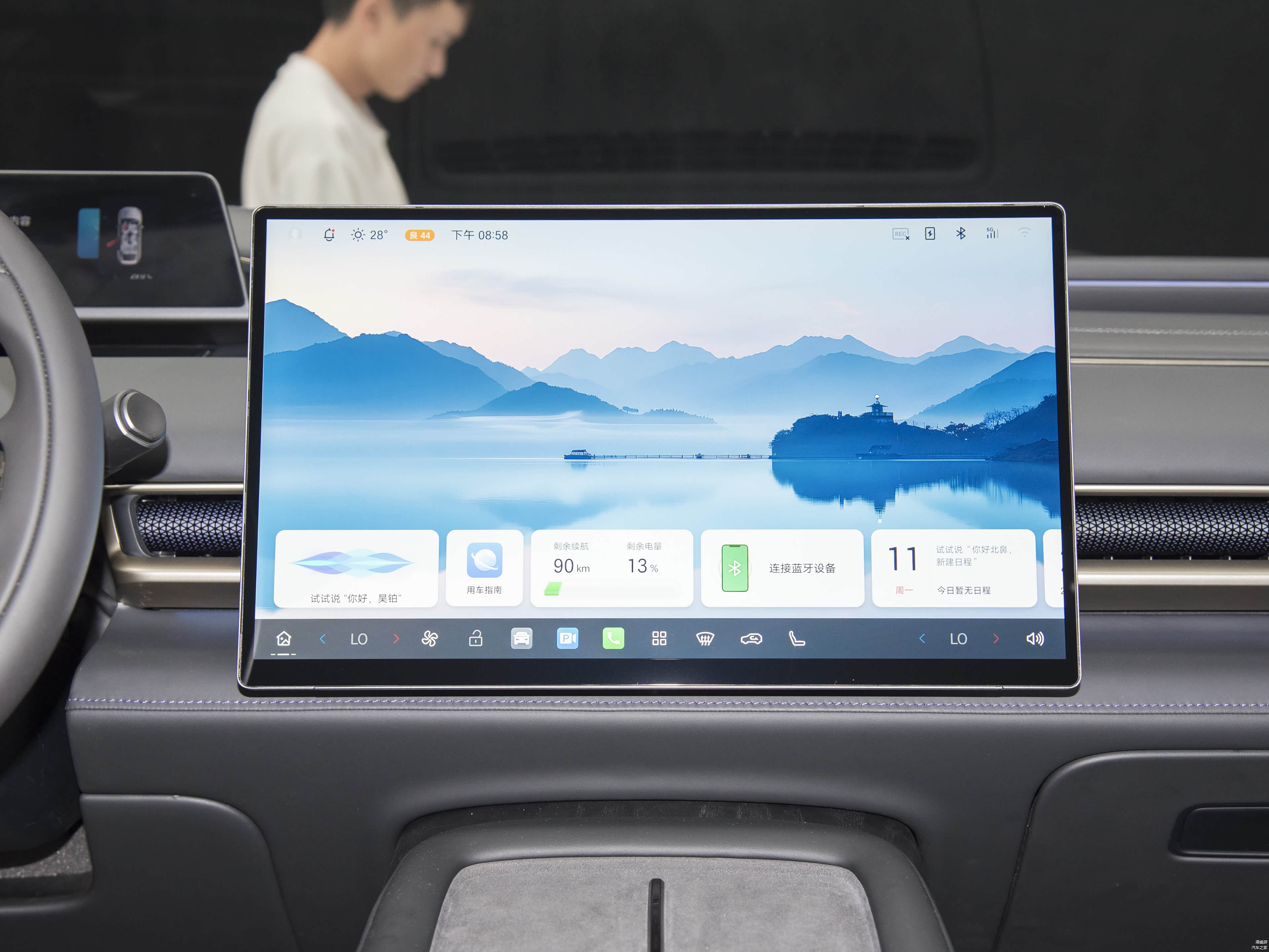理想L8的方向盘同样采用真皮材质包裹,并且也搭载了电子怀挡,配备15.7英寸中控屏和15.7英寸的副驾娱乐屏,分辨率同样为3K。与昊铂HL一样,理想L8的车载智能芯片也采用了高通骁龙8295P芯片,同时内置理想最新的理想同学,支持AI大模型。功能上比昊铂HL多了声纹识别、手机控制,标配六音区的语音识别,其余功能两台车基本一致。值得注意的是,理想L8的仪表区域并没有保留传统的液晶结构,而是采用了13.35英寸的HUD和方向盘上的4.82英寸仪表盘显示屏组合的方式来呈现行车信息。