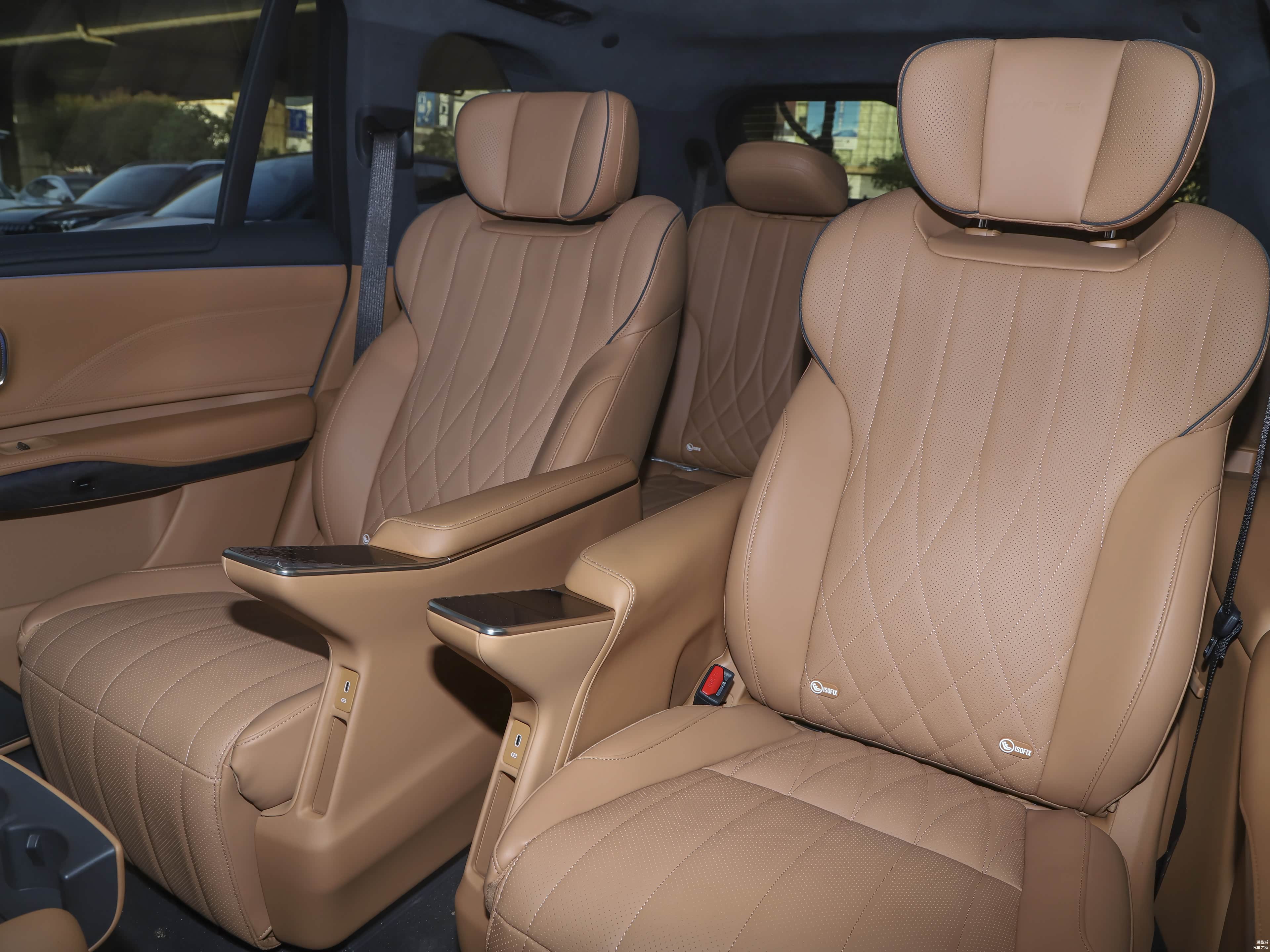 座椅方面,昊铂HL提供2+3式5座和2+2+2式6座两种布局,除了两款入门车型外,其余车型座椅均采用Nappa真皮材质包裹,前排座椅全系标配加热/通风/按摩/记忆功能。同时,第二排座椅同样标配加热/通风/按摩功能,并配备第二排小桌板。六座车型的二排配备零重力座椅,三排座椅同样支持电动调节功能。