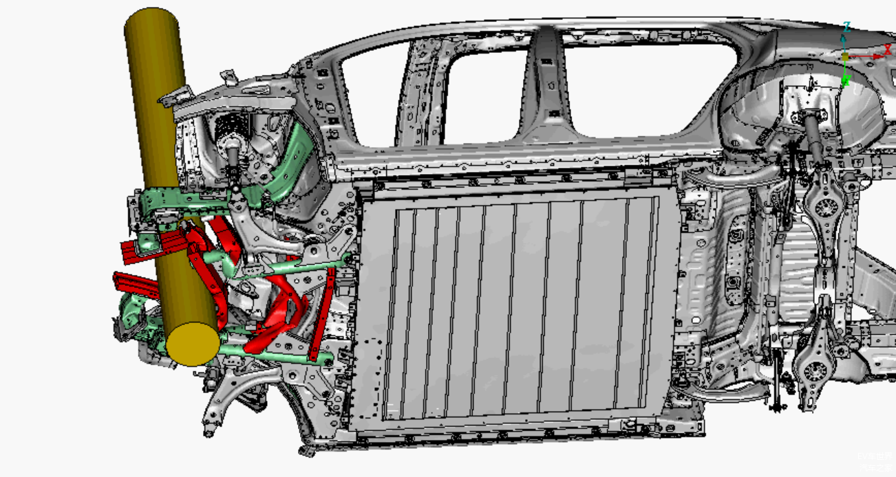对于正面中心柱碰,其实国标没有强制要求,而吉利之所以要坚持做正面中心柱碰,是因为吉利在参与国内外各类安全事故的调研工作中发现,在雨雪天等环境车辆失控时会以较高的速度与电线杆、路边树木、交通指示牌的立柱、高速龙门架等垂直柱状物体发生正面撞击的情况,由于碰撞面积狭小,冲击力高度集中,导致侵入量较大,柱碰往往比正面或侧面大面积碰撞更具危险性。
