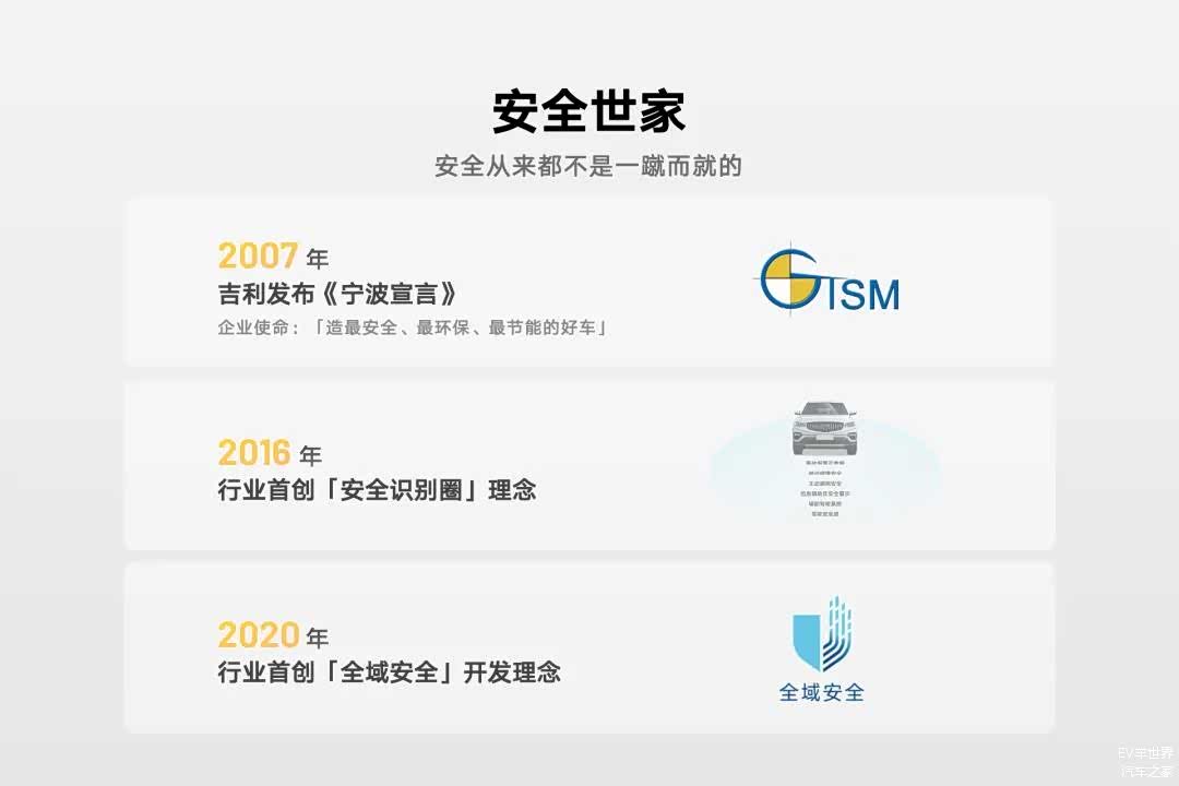 2025年,“安全平权”这个词开始频繁出现在各大车企的发布会上。但实际上在此很多年之前,吉利就已经将“安全至上”的理念深深刻在了品牌基因里,比如2009年吉利熊猫就已经获得了五星级安全碰撞的成绩、2016年行业首创的“安全识别圈”理念、2020年提出“全域安全”的开发理念等等。另外今年吉利还将于发布智能汽车全域安全白皮书,并公开安全技术成果,这一系列技术成果,都足以说明“安全平权”并不只是吉利在发布会上宣传的卖点,而是真正不遗余力始终坚持完成的目标。