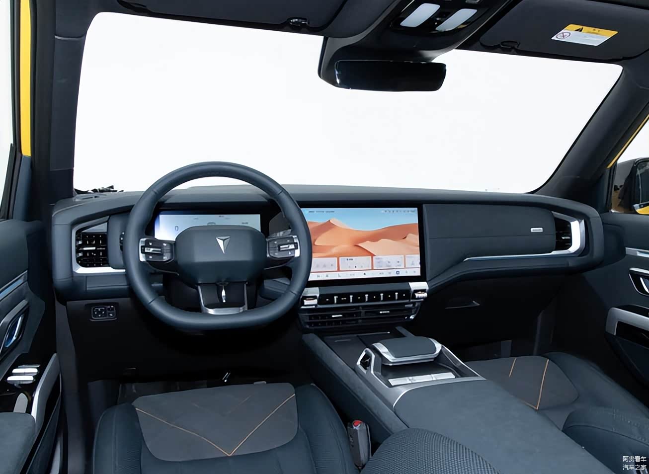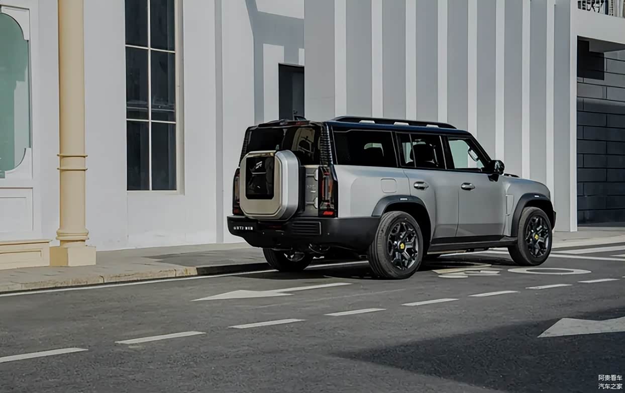 深蓝G318无忧穿越版同样将在4月18日上市,新车和常规版相比,有着更多的越野套件和特别的硬派设计。依旧是方盒子造型,车头饰板有斜向的纹理,下方保险杠粗壮,全新样式的18英寸轮辋,外挂式备胎十分显眼,粗犷又不失精致感。尺寸方面,新车的三围为5125/2025/1950mm,轴距为2880mm。隐藏式拖车钩,依旧有拖车资质。动力依旧是1.5T增程式驱动系统。你觉得够帅吗?