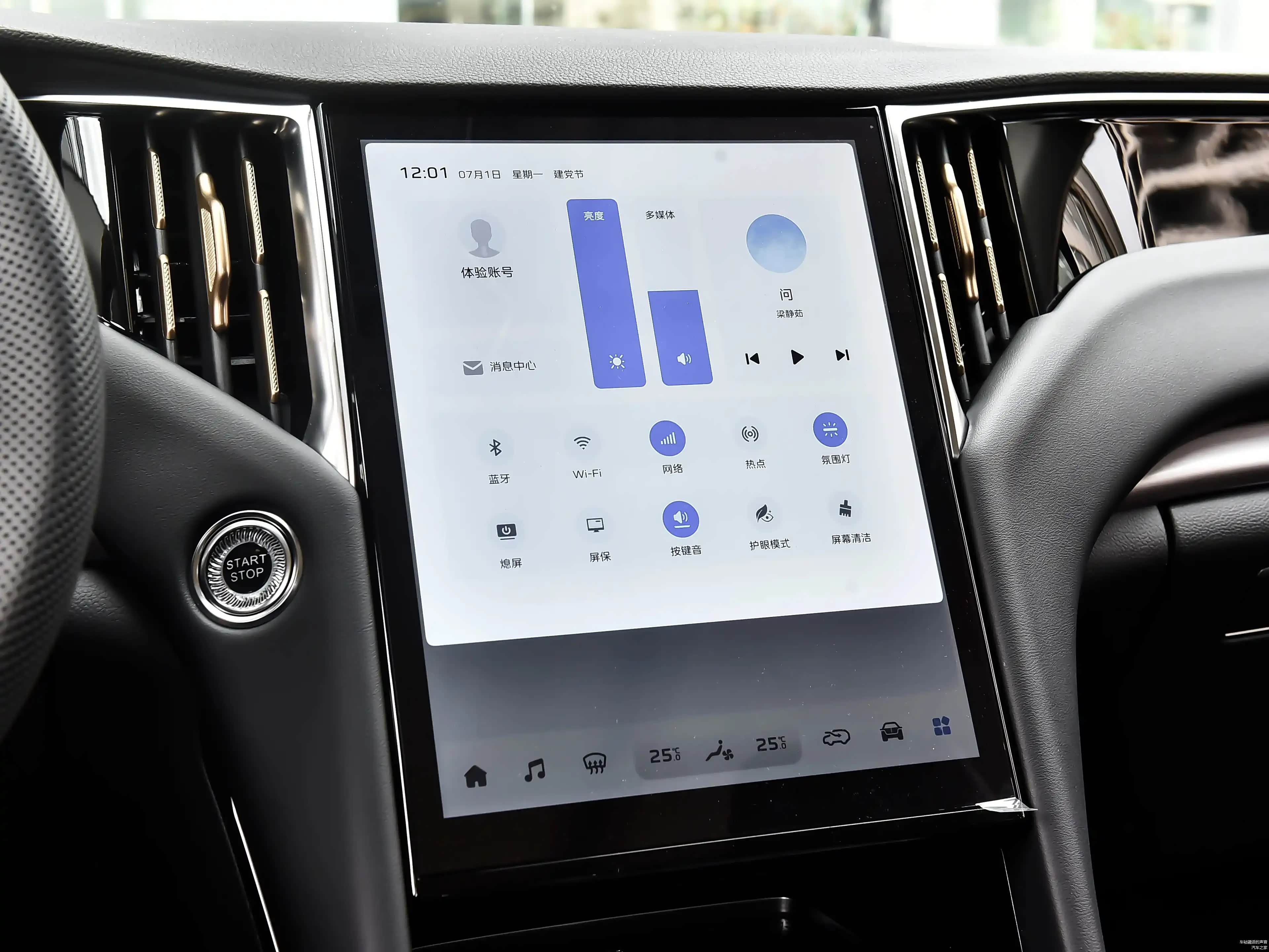 红旗HS7 PHEV的内饰表现绝对可以算是在细节中尽显豪华,12.6英寸的中控屏配合着12.3英寸的仪表盘,这在现在绝对可以算的上是一套很主流的配备,并且它还在高配车型上配备了HUD抬头显示系统,内饰的装饰也采用了钢琴漆和哑光金属饰件为主的设计,无论是从科技感还是从豪华感上来说,绝对是一点毛病没有。
