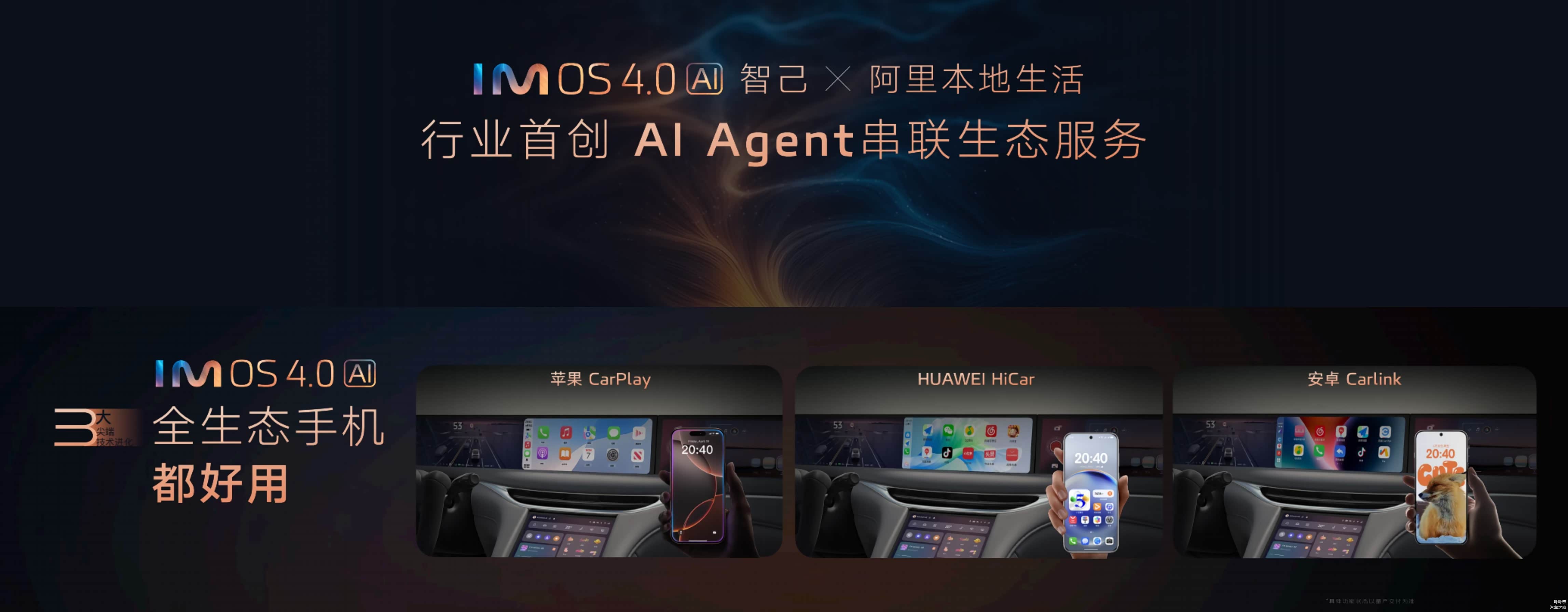 4、IMOS4.0智能座舱,AI大模型& AI Agent可以记忆你的习惯,帮你规划,帮你执行,让车机交互实现No Touch & No App,苹果CarPlay / 华为HiCar / 安卓Carlink,全生态手机都好用,另外AI Agent技术路线也将在宝马新世代车型上应用。