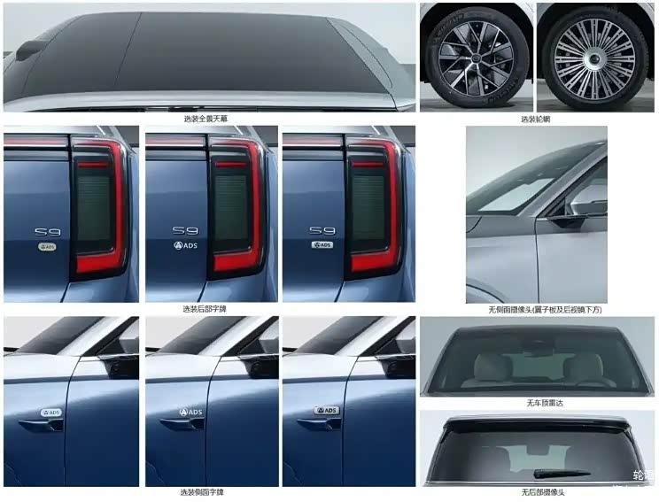 前脸部分配备狭长的贯穿式LED头灯组,下方前包围两侧的风道使前脸更有棱角,中间的横幅式梯形进气口丰富层次,车顶上配备激光雷达,代表支持高阶智驾。车身侧面采用大量硬朗的线条勾勒,高窗线设计看起来十分稳重,双拼色车身搭配类似豪华品牌的“大饼”轮毂,提升高级感的同时彰显强大的气场。细节上还采用了隐藏式门把手,降低风阻。