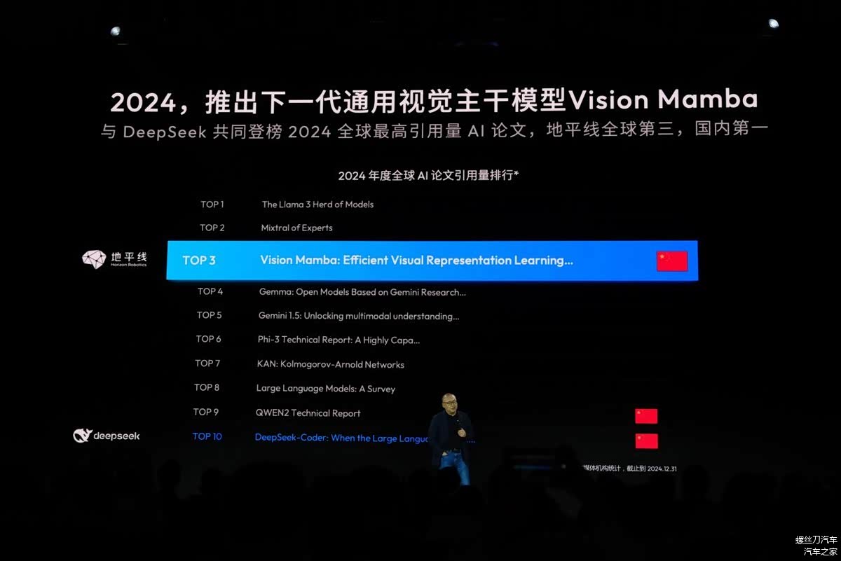 同时,在不断地研发进程中,地平线也荣获了多个国际奖项,2024年获得“全球最高引用量AI论文”第三名,另外一同获奖的中国品牌就是我们大家熟知的“DeepSeek”。虽然这样的奖项对于观众听起来没有太多感觉,但透过问题看本质,确实能看的出来地平线在推动智能化进程和AI大模型中,为全球提供了很多参考意义。
