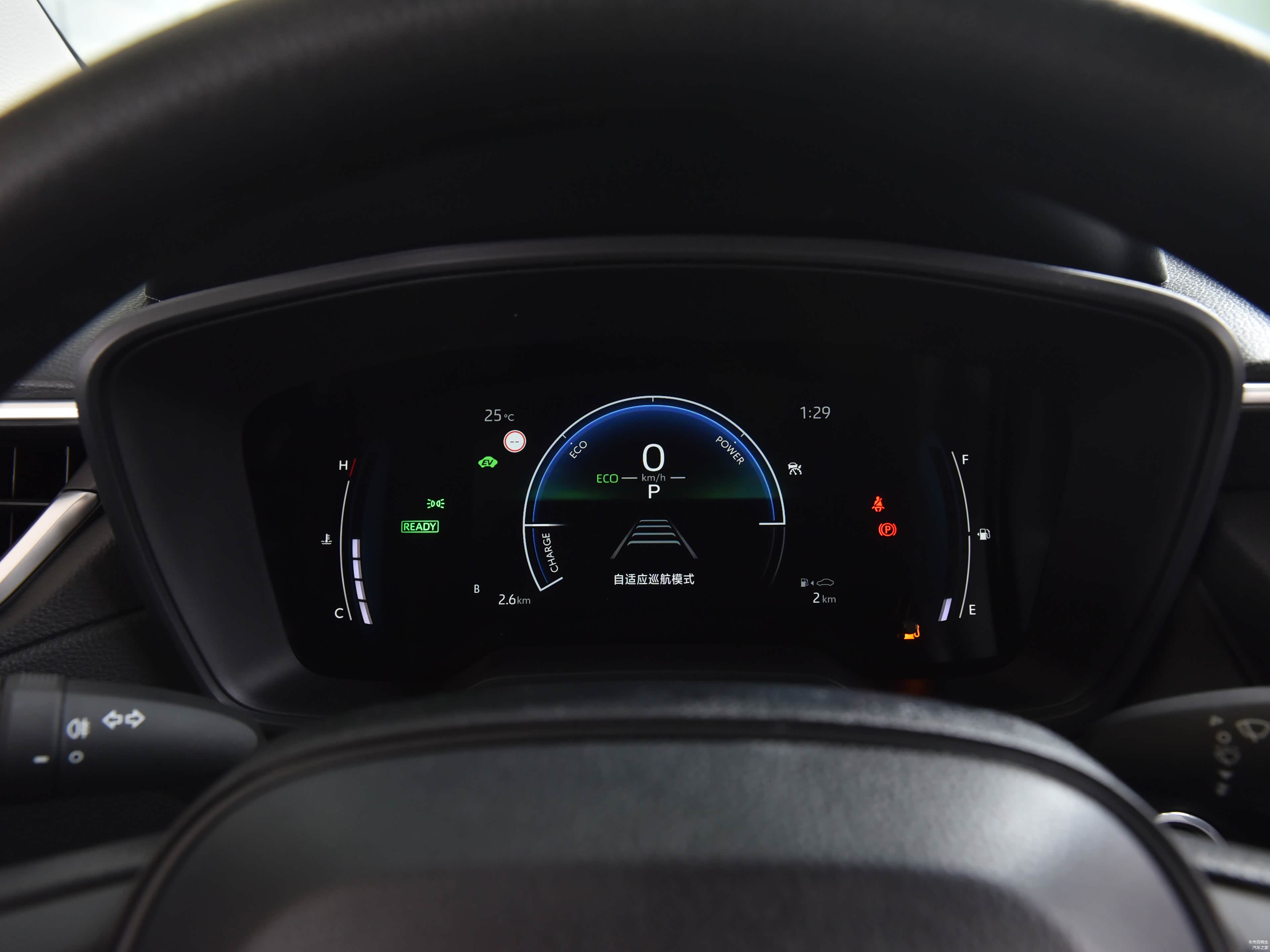 前方的仪表盘尺寸为7英寸,两侧是水温和油表,中央则是信息丰富的行车电脑显示屏,此外值得一提的是它全系标配了胎压显示,同时双擎旗舰版还提供了更高级的12.3英寸全液晶仪表。