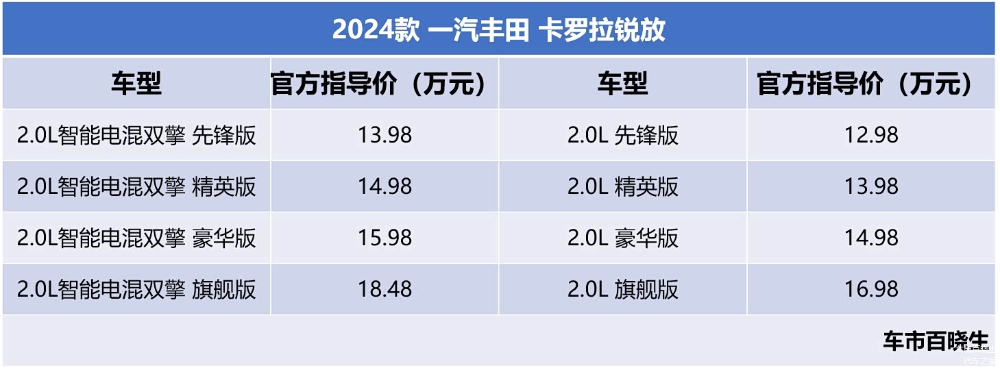 个人认为,丰田的混动技术是经过全球验证的,因此可靠性一流,再加上同样一流的节油性,还是非常建议选择的,同时它的混动无需插电,所以即拥有更强的便利性,又能有效避免后续三电的麻烦事儿。当然,如果你就是不信任电混的话,那么2.0L动力也同样值得选择。