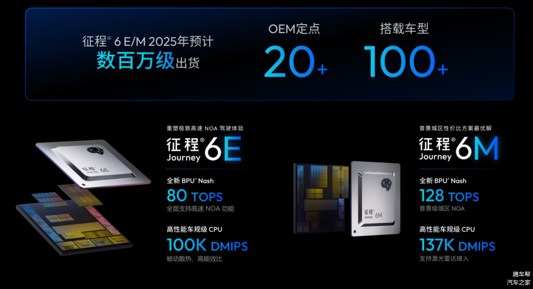 其中,征程6P是地平线征程6系列中的旗舰产品,算力高达560TOPS。而征程6系列还拥有6M、6E等产品序列,覆盖10-560TOPS算力,是目前国内唯一满足从L2辅助驾驶到全场景城区辅助驾驶需求全覆盖的智驾计算方案,适合各种智能车型的需求。