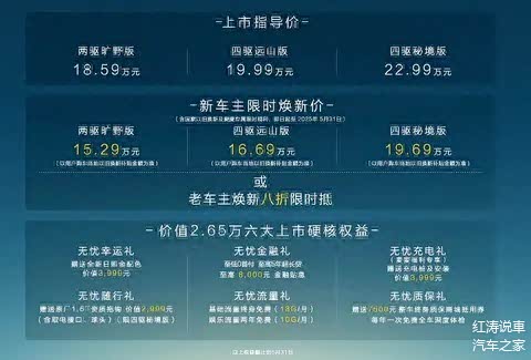 此生必驾318,是很多越野车迷响亮的口号,而有这么一款增程中大型SUV,就以“318”命名,它就是深蓝G318,目前从深蓝汽车获悉,深蓝G318无忧穿越版正式上市,官方指导价格为18.59万元起,叠加国家以旧换新补贴,深蓝限时福利之后售15.29万元起,活动截止日期为2025年5月31日,新车在现款基础上进行了多方面升级。