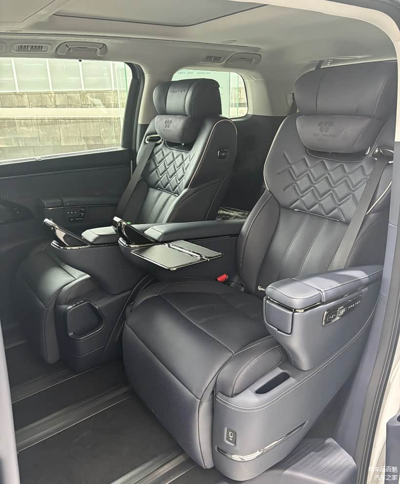 乘用性表现方面,新车的长宽高分别为5251/1893/1823mm,轴距3070mm;在尺寸编排上,甚至还要略优于M8宗师系列车型。另外,新车还会配备2+2+3的七座布局,且第二排座椅为双零重力座椅,并具备电动腿托和通风/加热/机械按摩以及石墨烯热疗颈枕等功能,搭配后排独立扶手的翻折小桌板/液晶屏、17.3英寸吸顶娱乐屏、车载冷暖冰箱、20扬雅马哈音响系统等,高端舒适性表现,还是塑造得比较到位的。