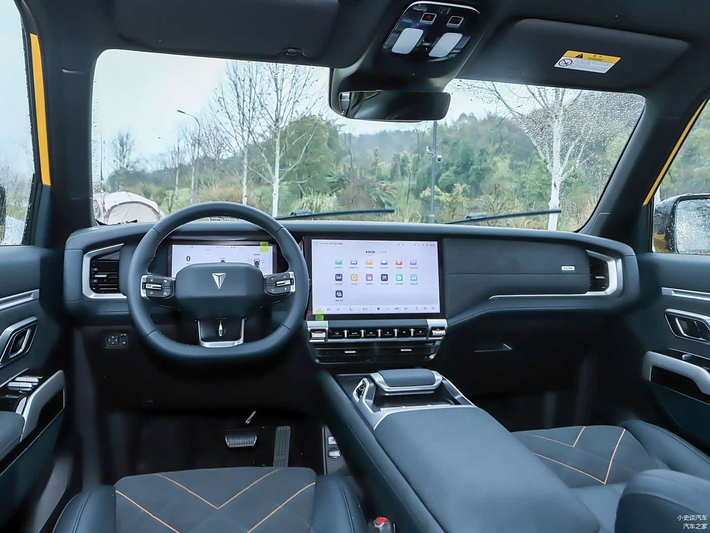 进入车内,新车内饰造型简约时尚,并且以“太空舱”为设计理念,配备14.6英寸内嵌式中控屏、10.25英寸液晶仪表盘及双辐式多功能方向盘,其搭载的智能车机系统支持5G网络与OTA远程升级,操作流畅度堪比高端平板电脑,强调科技感的表现。并且中控屏下方设置空调系统的实体控制按键,保留传统握杆式换挡机构,并带有P挡驻车按键及四驱系统调节按键。依旧提供手机无线充电面板、后桥差速锁控制按键等,驾驶时操作方便快捷。并且副驾手套箱位置提供可支撑3公斤的挂钩,中控台两侧边缘位置带有方便上下车的把手。