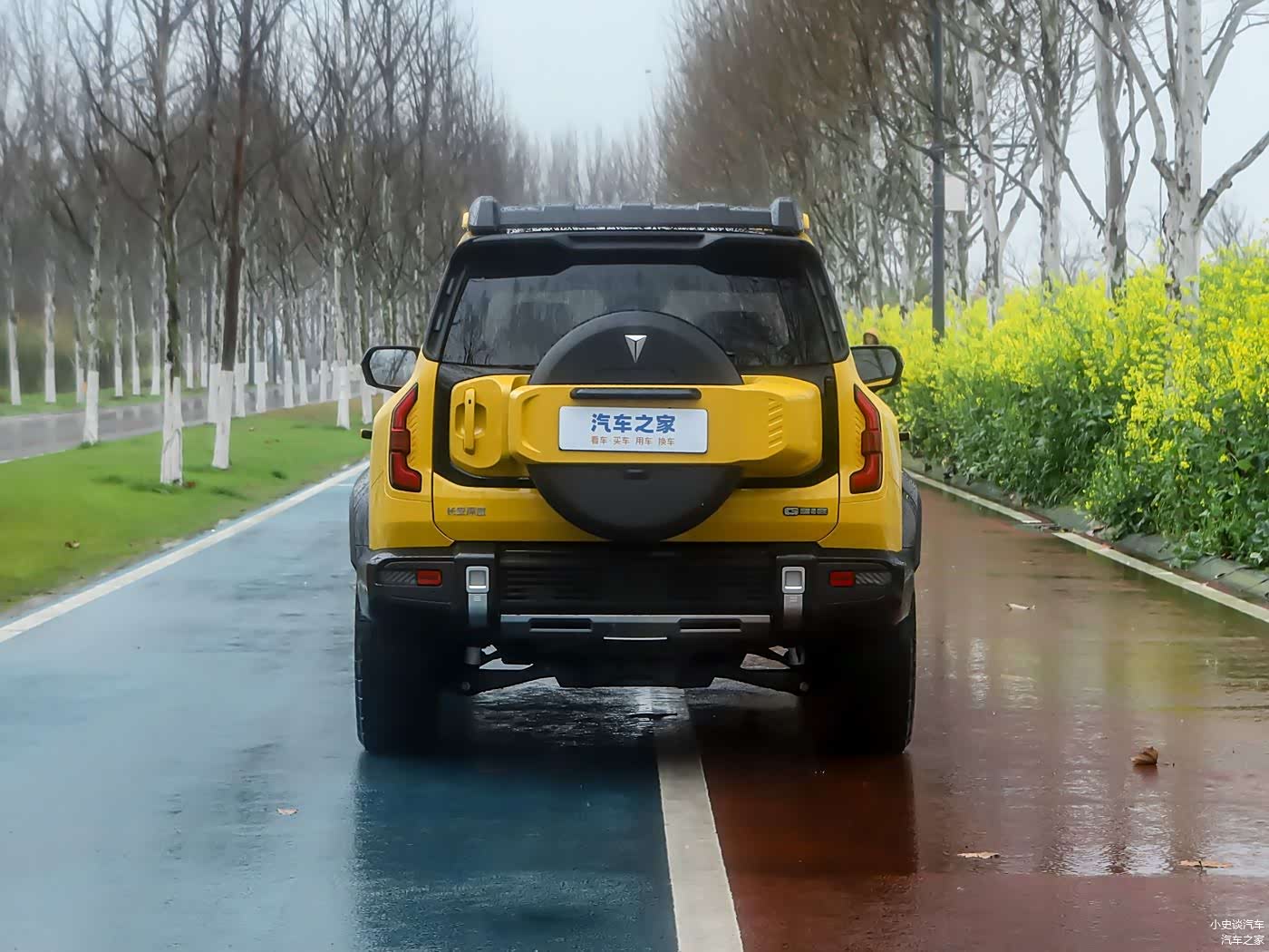 车尾方面,新车的设计紧凑而饱满,尤其是在车顶有着突出的黑色扰流板设计,中央断开的造型就像是尾翼一般来增加运动感,两端还有着延伸的黑色饰条,中央备胎设计造型个性,横向的一条宽厚饰板连接全尺寸备胎,并且尾门为侧开式的设计。两侧C字型的立体式尾灯组夜间点亮后极具辨识度,但就是面积有些小,而后包围的银色护板既提升了视觉层次感,又能在复杂路况下有效保护车体,还能够呼应车头来提升整体感。另外,尾部的拖车钩改为隐藏式设计,依旧具有1.6吨的拖车资质。